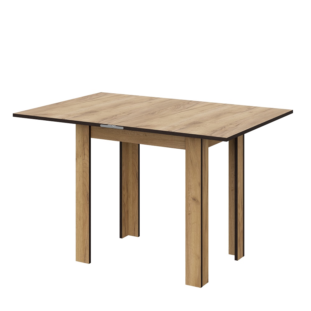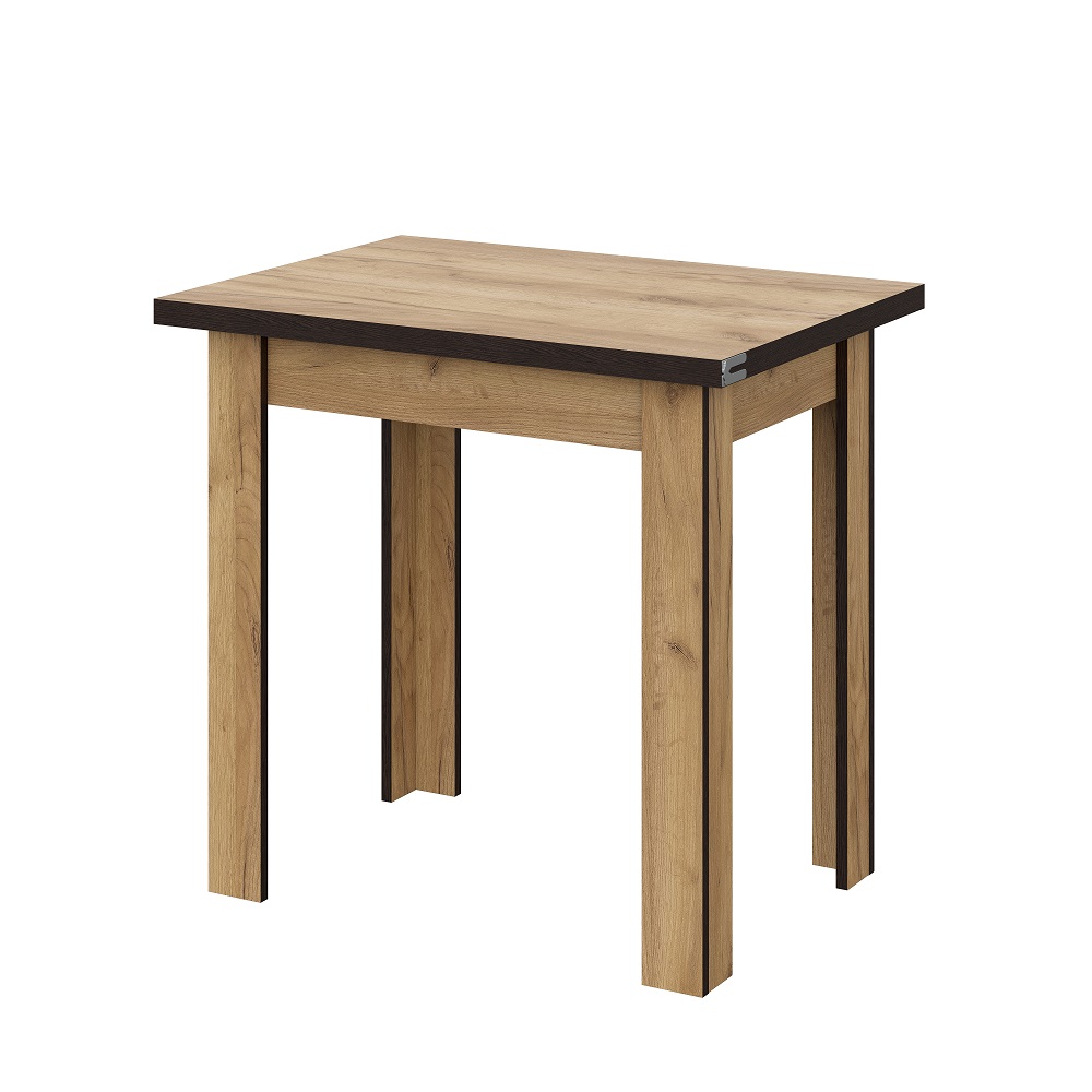 Обеденный раскладной стол из ЛДСП. В сложенном виде имеет компактные размеры. Благодаря удобному и надежному механизму разложения ширина столешницы легким движением руки увеличивается с 75 до 112 см.