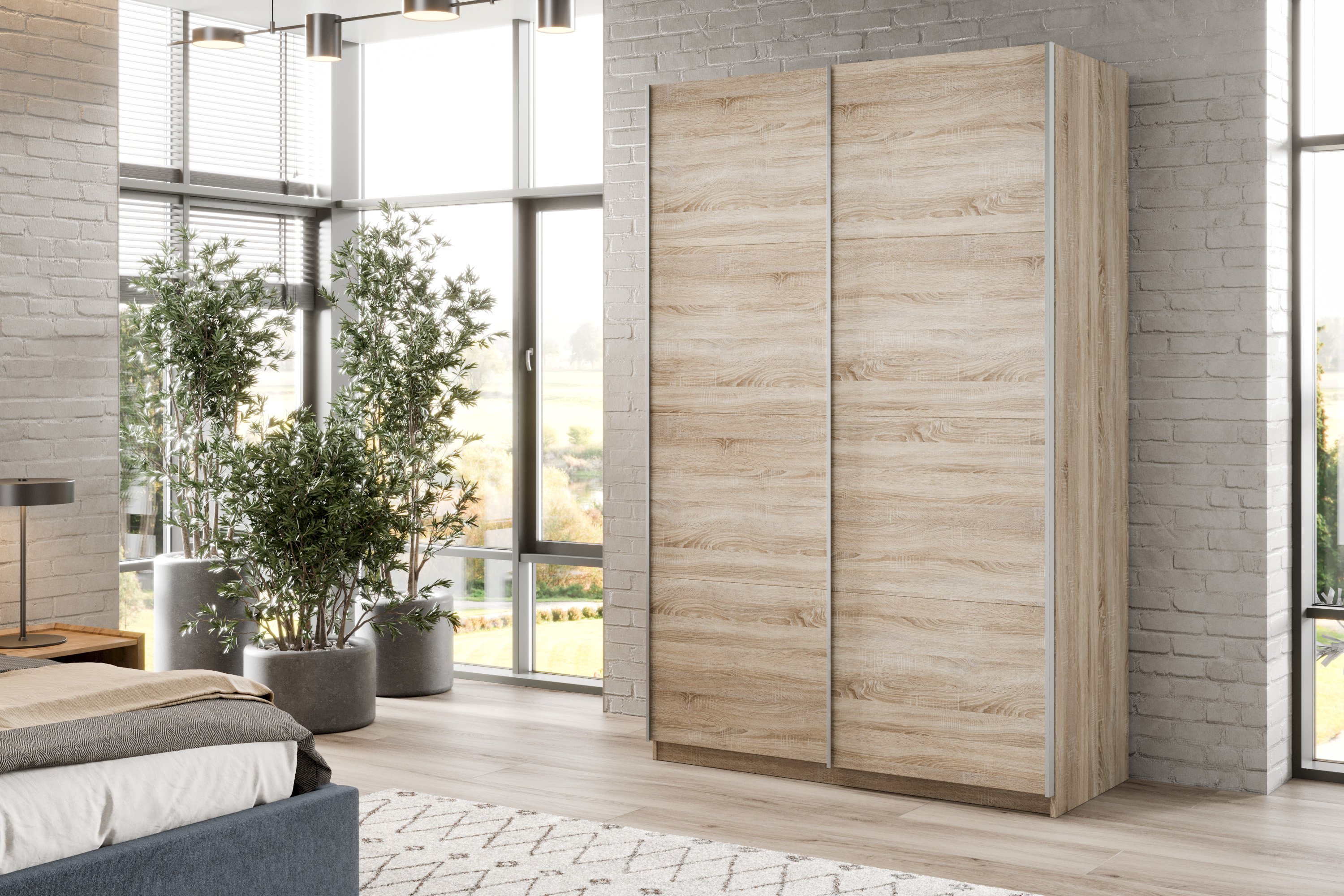 Шкаф-купе Smart 1422 2х дверный (фасады ЛДСП) профиль серебро (Дуб сонома)