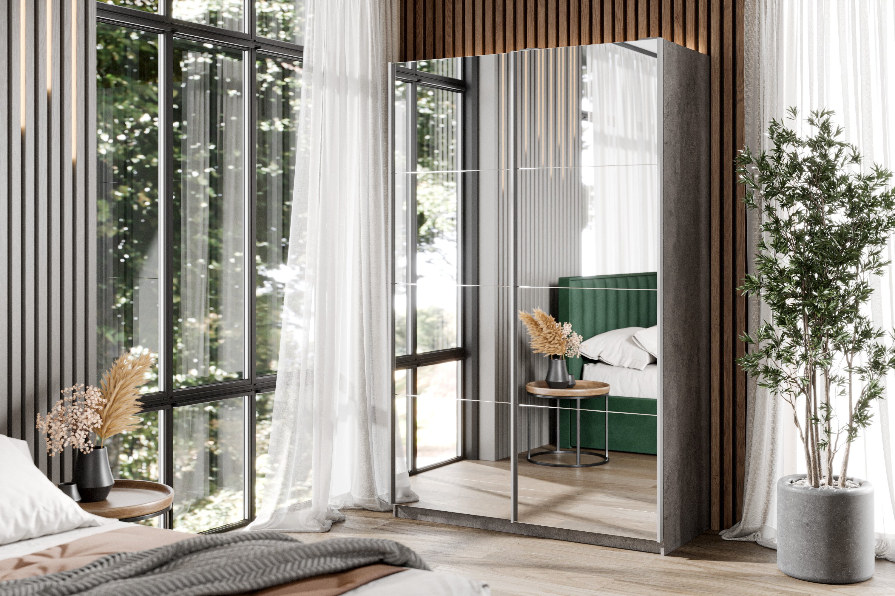 Шкаф-купе Smart 1622 2х дверный (фасады зеркало) профиль серебро (Бетон) Код I0000411309