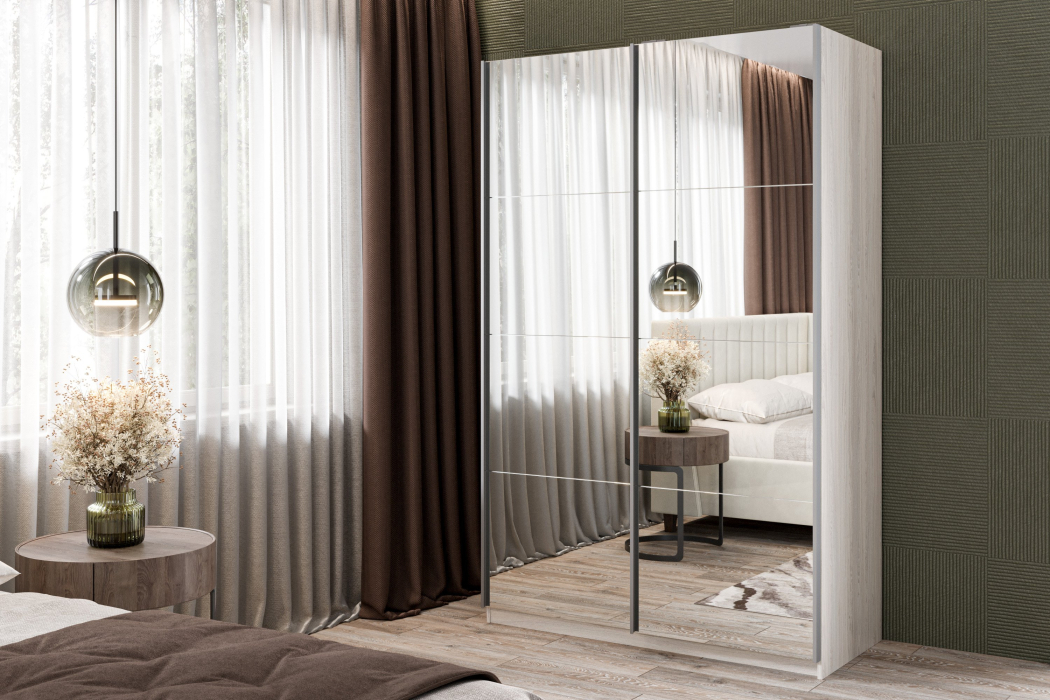 Шкаф-купе Smart 1622 2х дверный (фасады зеркало) профиль серебро (Ясень Анкор светлый)