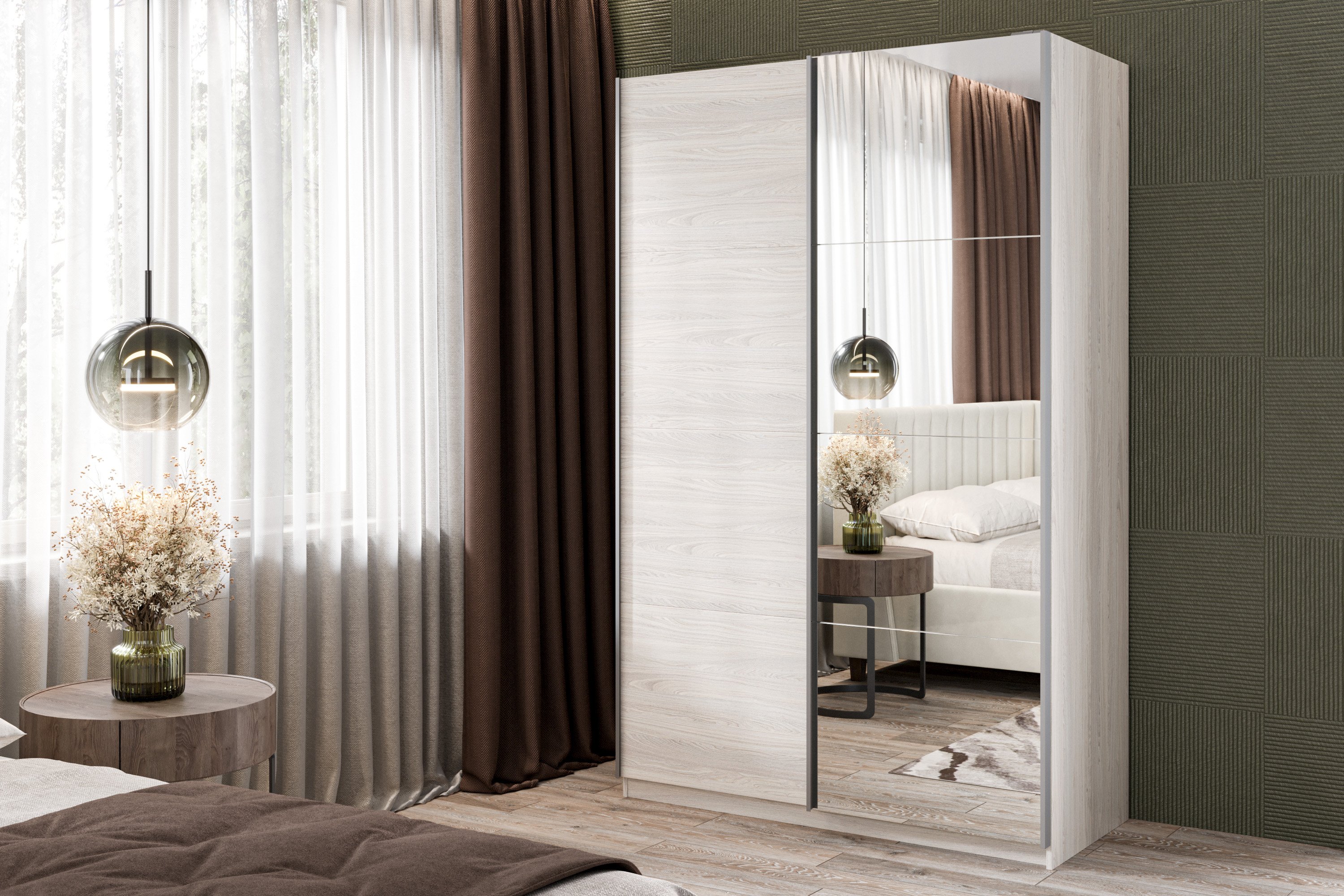 Шкаф-купе Smart 1622 2х дверный (фасады ЛДСП,зеркало) профиль серебро (Ясень Анкор светлый)