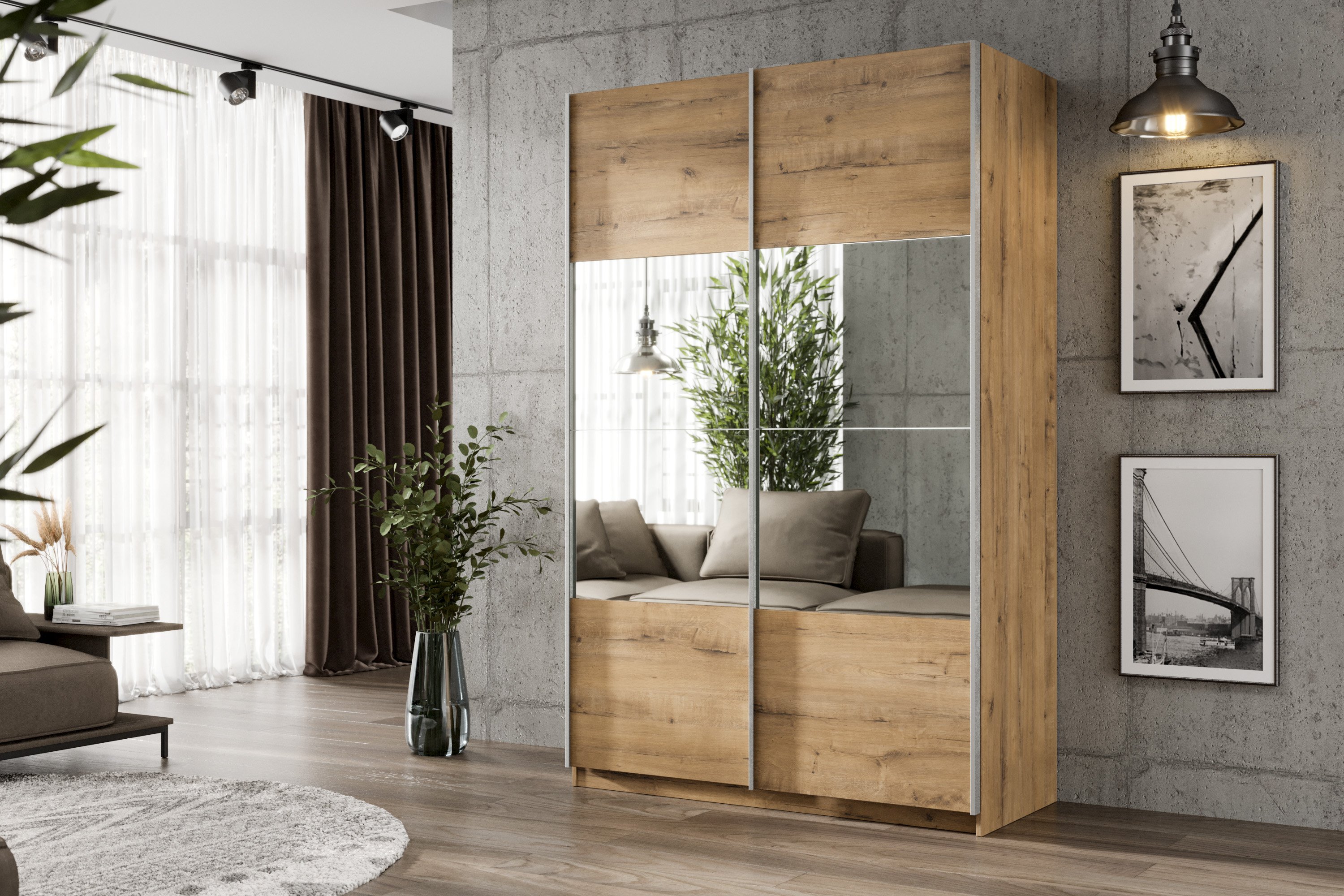 Шкаф-купе Smart 1622 2х дверный (фасады ЛДСП/зеркало) профиль серебро (Бунратти)