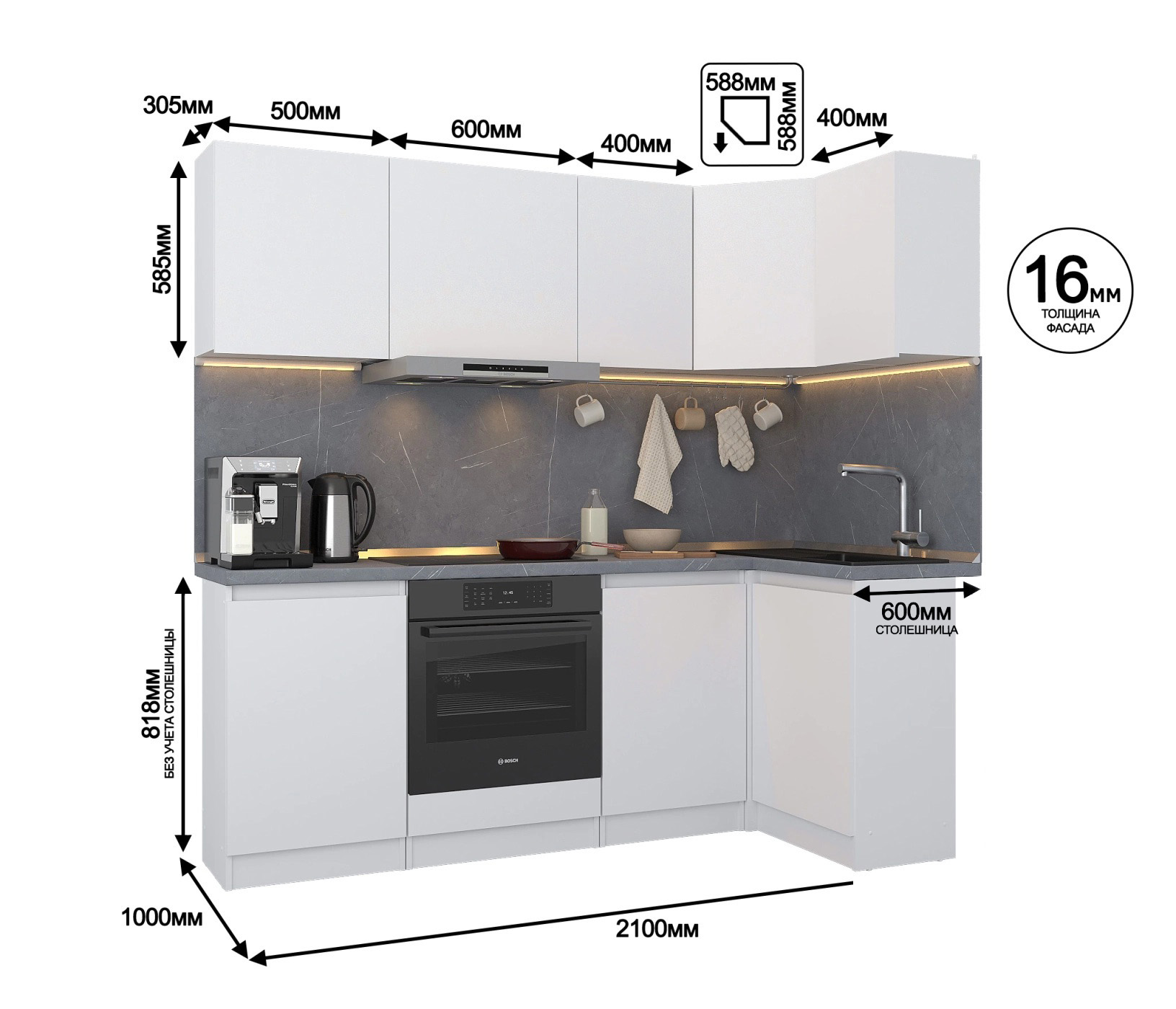 Отзывы о Столплит Кухонный гарнитур Леон угловой 210х100 см, белый