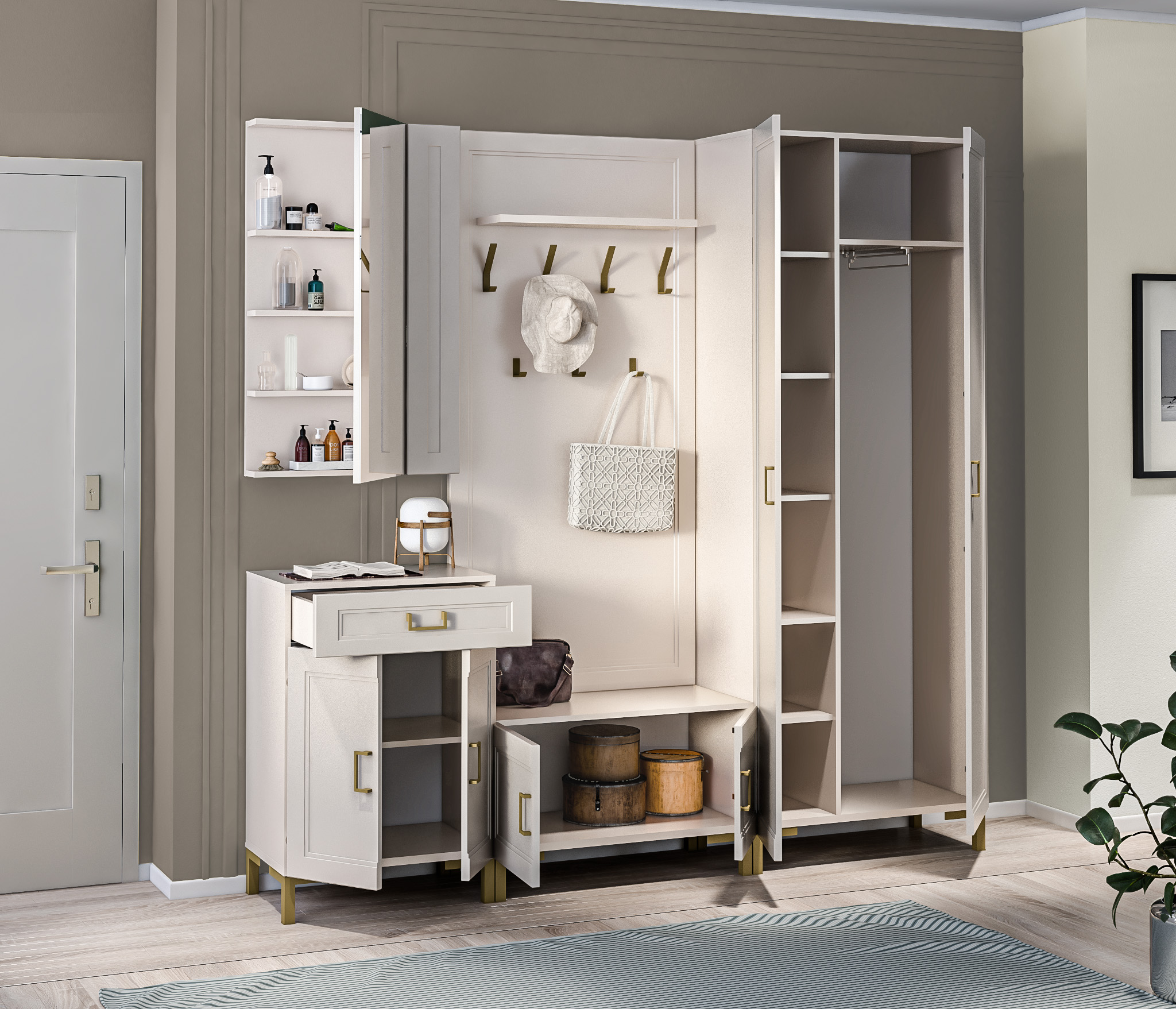 Золотистые ручки и ножки коллекции "Ассоль" добавляют неповторимый шик и изысканность, завершая образ тонким и стильным блеском. Эти акценты создают атмосферу роскоши и утонченности. Они играют роль визуального украшения, дополняя общий вид мебели и придавая ей особый шарм и элегантность.