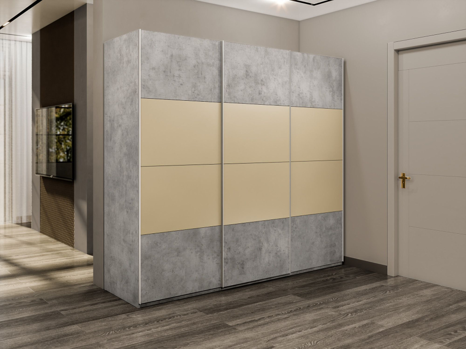 Шкаф-купе Эста 3-х дверный ДСП/Стекла фисташка/Доводчик 240х66х240 (Бетон) Код I0000408396