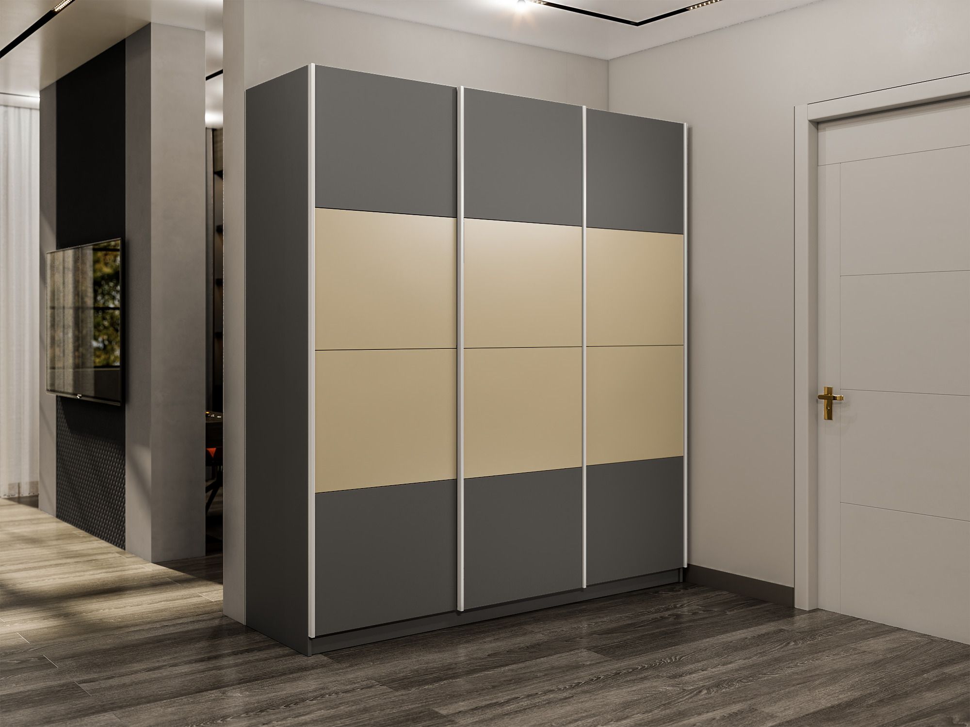 Шкаф-купе Эста 3-х дверный ДСП/Стекла фисташка/Доводчик 300х66х240 (Диамант серый) Код I0000408421