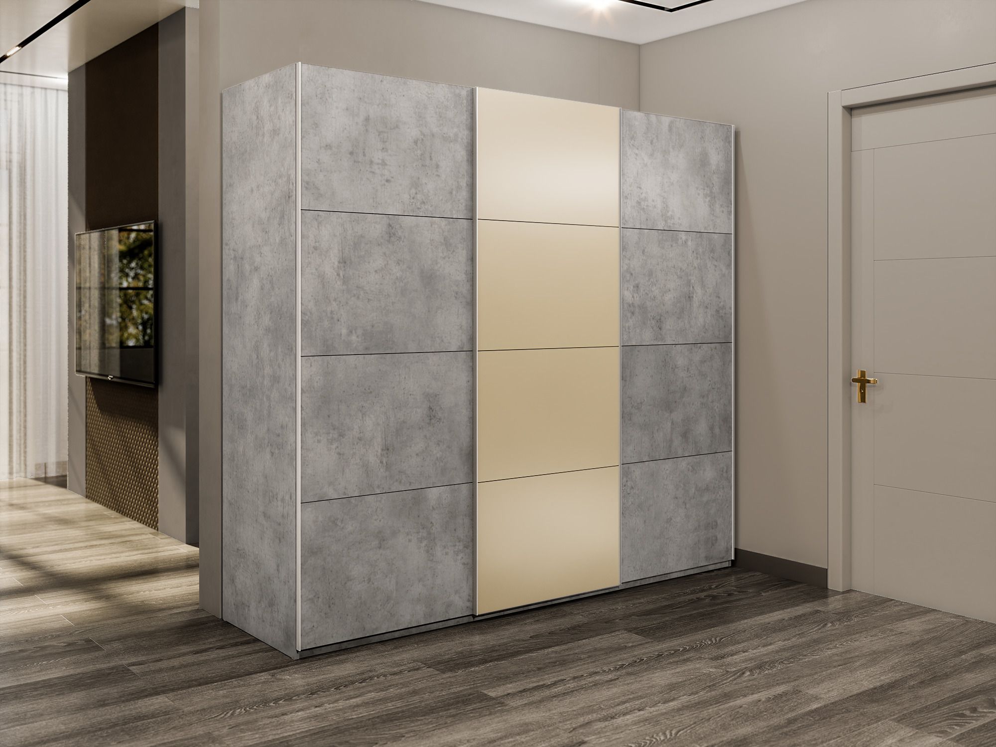 Шкаф-купе Эста 3-х дверный ДСП/Стекла фисташка/Доводчик 240х66х240 (Бетон) Код I0000408540