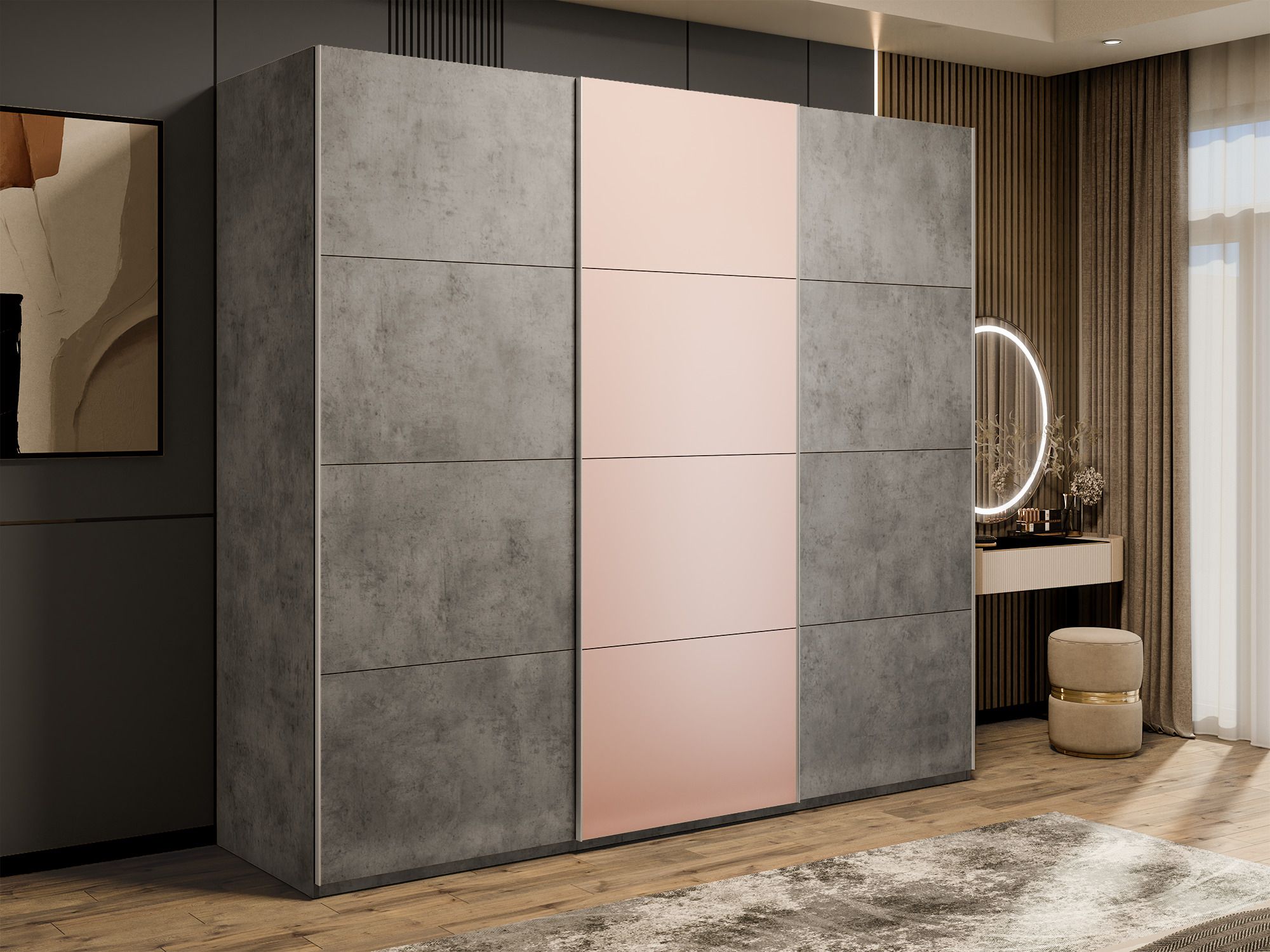 Отзывы о Столплит Шкаф-купе Эста 3-х дверный ДСП/Стекла пудра/Доводчик 240х66х240 Бетон