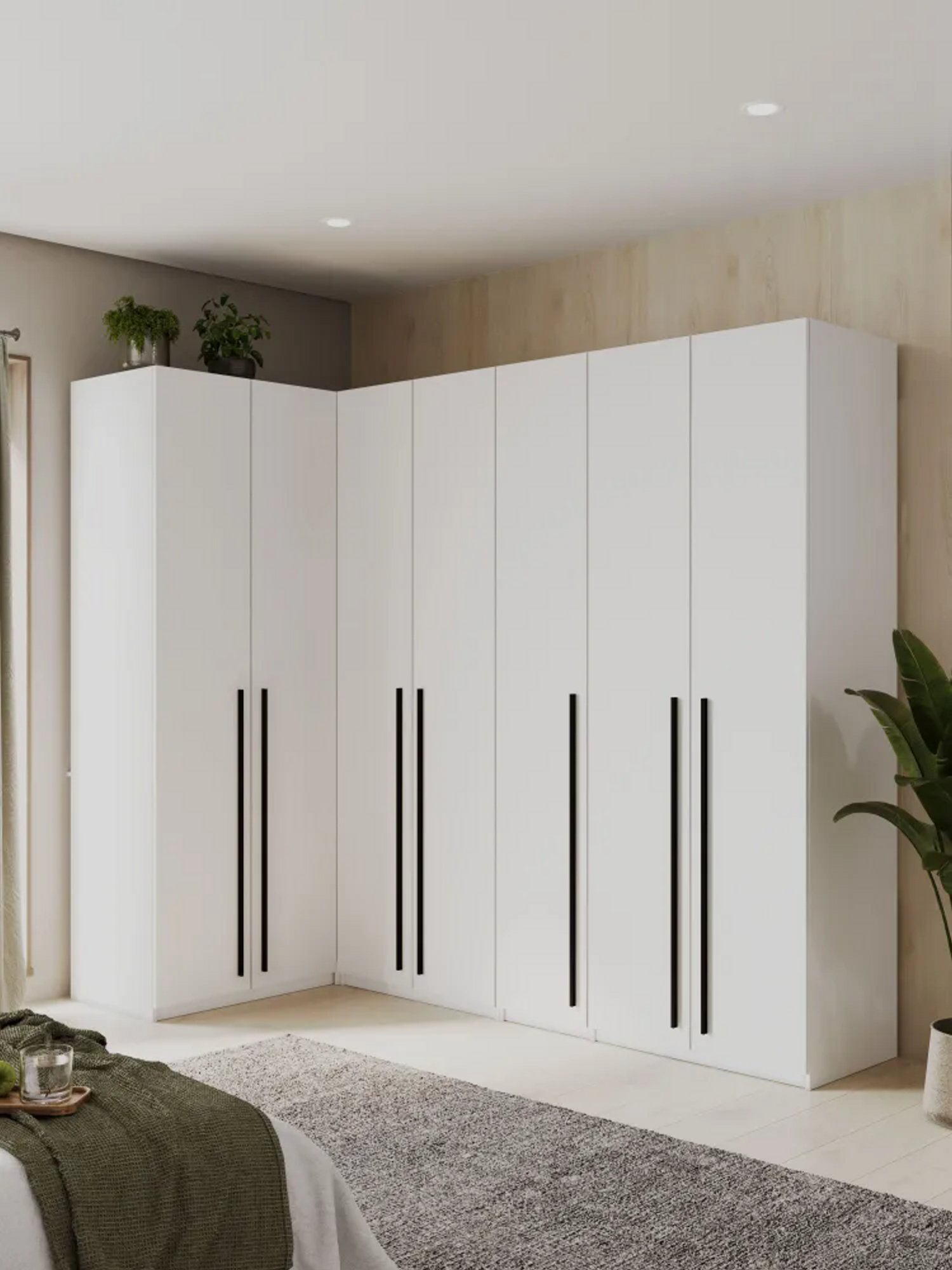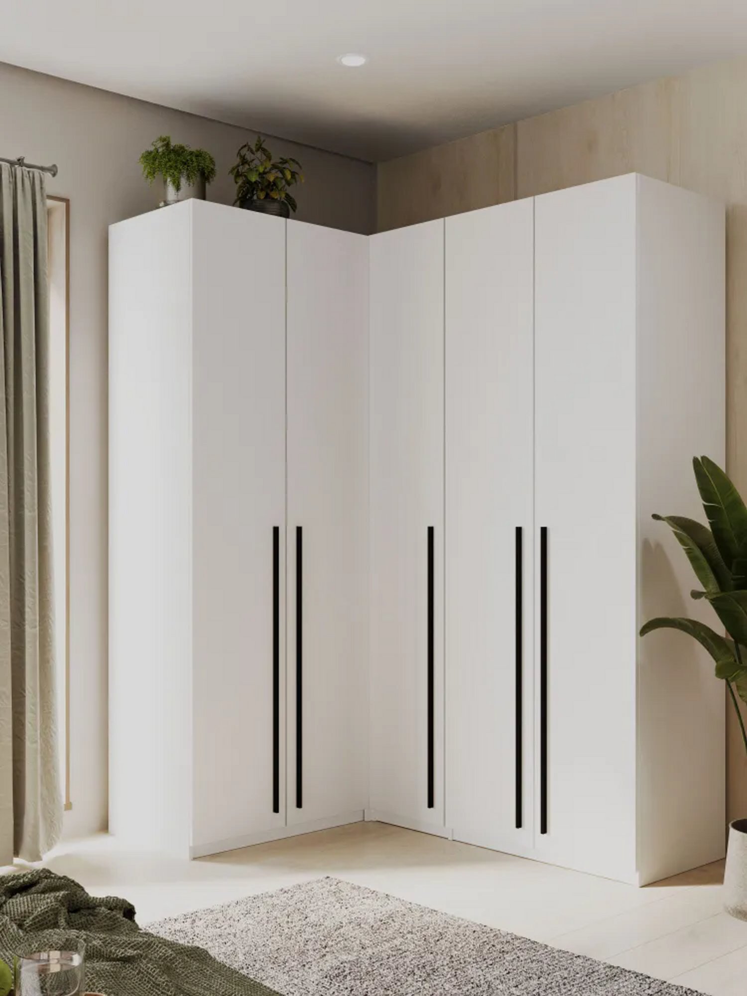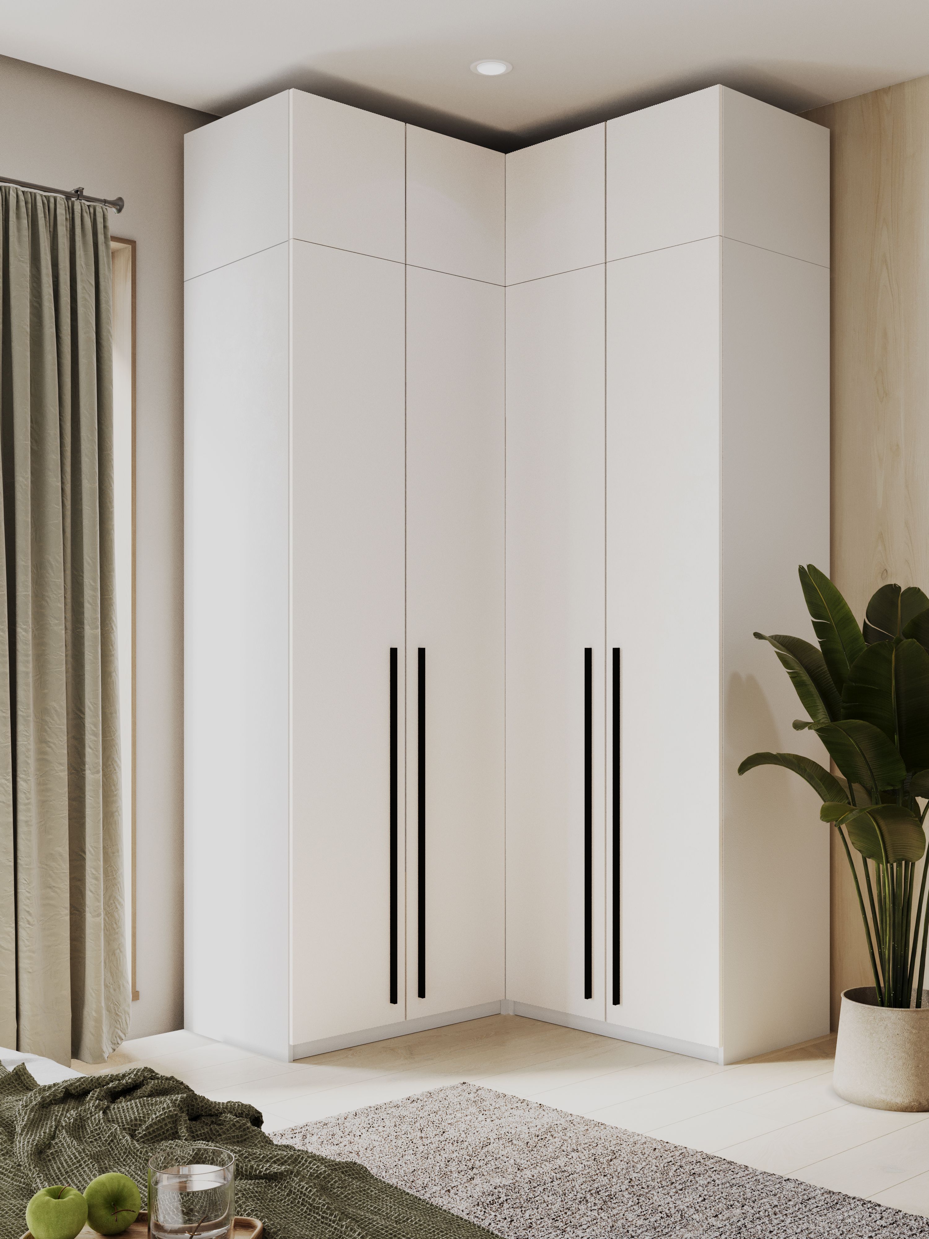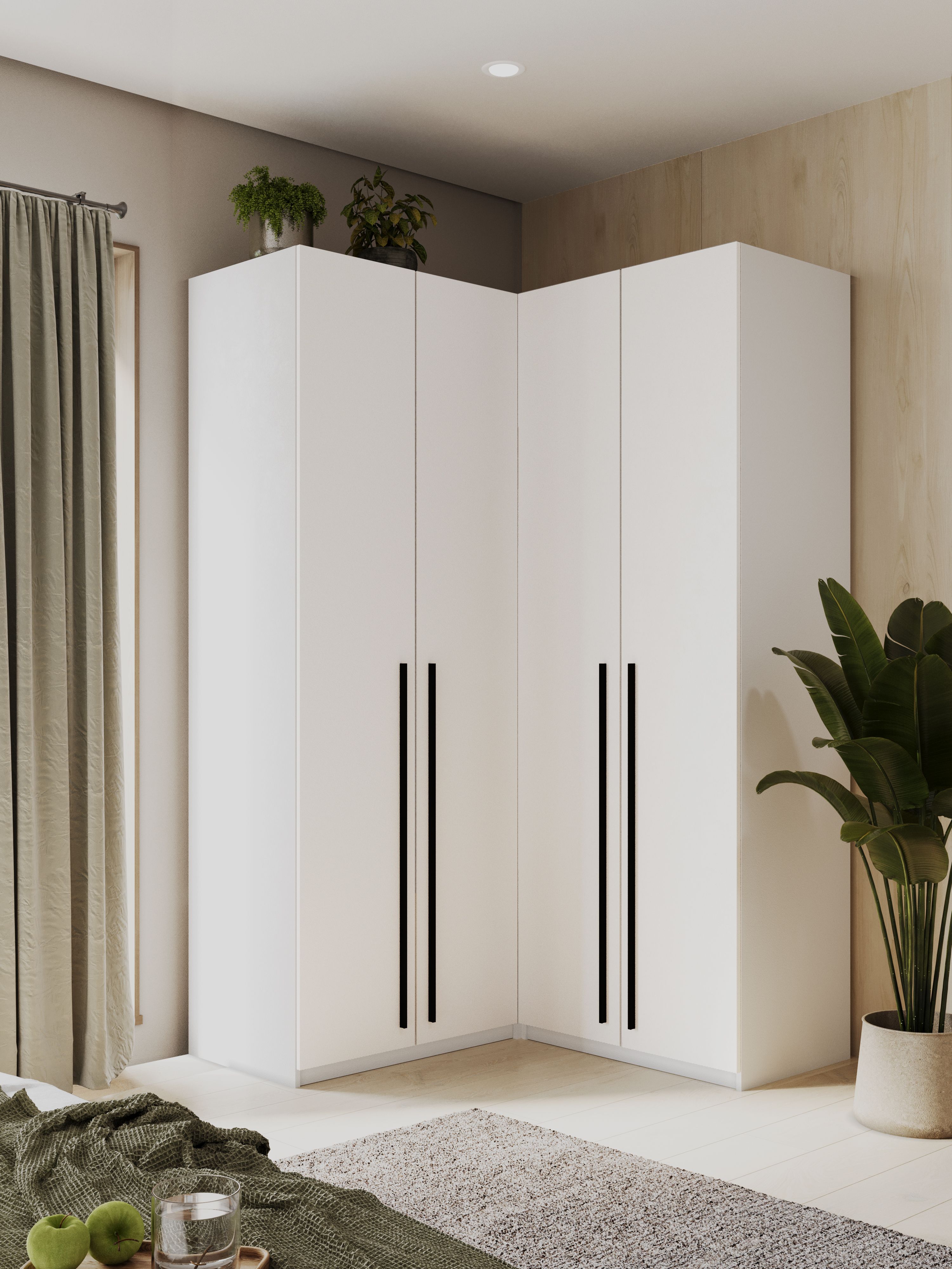 Габариты углового шкафа Мамбо СБ-2678 – ширина 86 см, высота 191 см и глубина 86 см. Это одно вместительное отделение со штангой для верхней одежды с антресолью сверху. Выполнен шкаф из прочного и современного материала КДСП. Цвет отделки корпуса – «Дуб Сонома», а фасадные поверхности белого цвета. Благодаря светлым тонам, шкаф не выглядит громоздким.