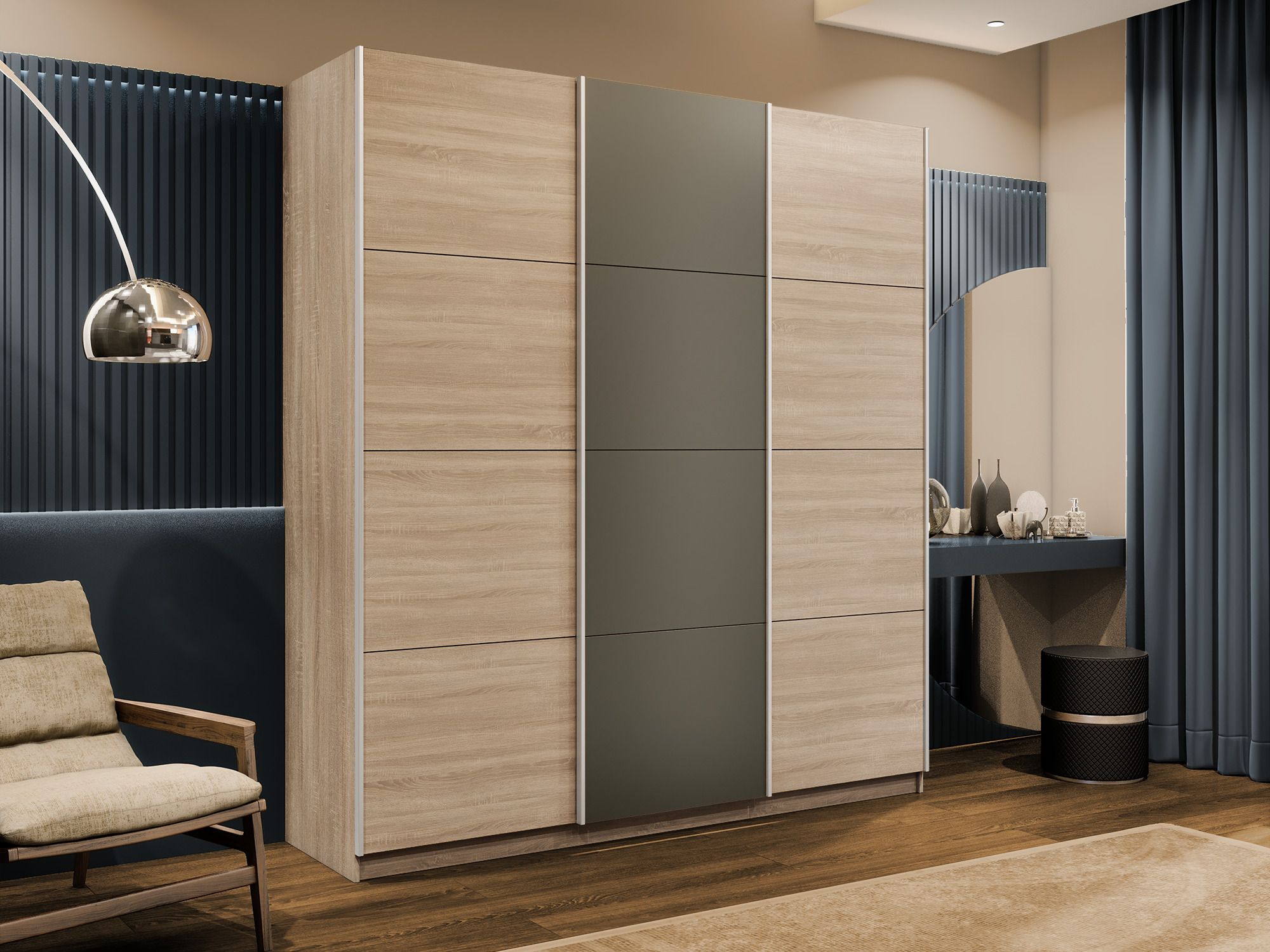 Отзывы о Столплит Шкаф-купе Эста 3-х дверный ДСП/Стекла хаки/Доводчик 270х66х240 Дуб Бардолино