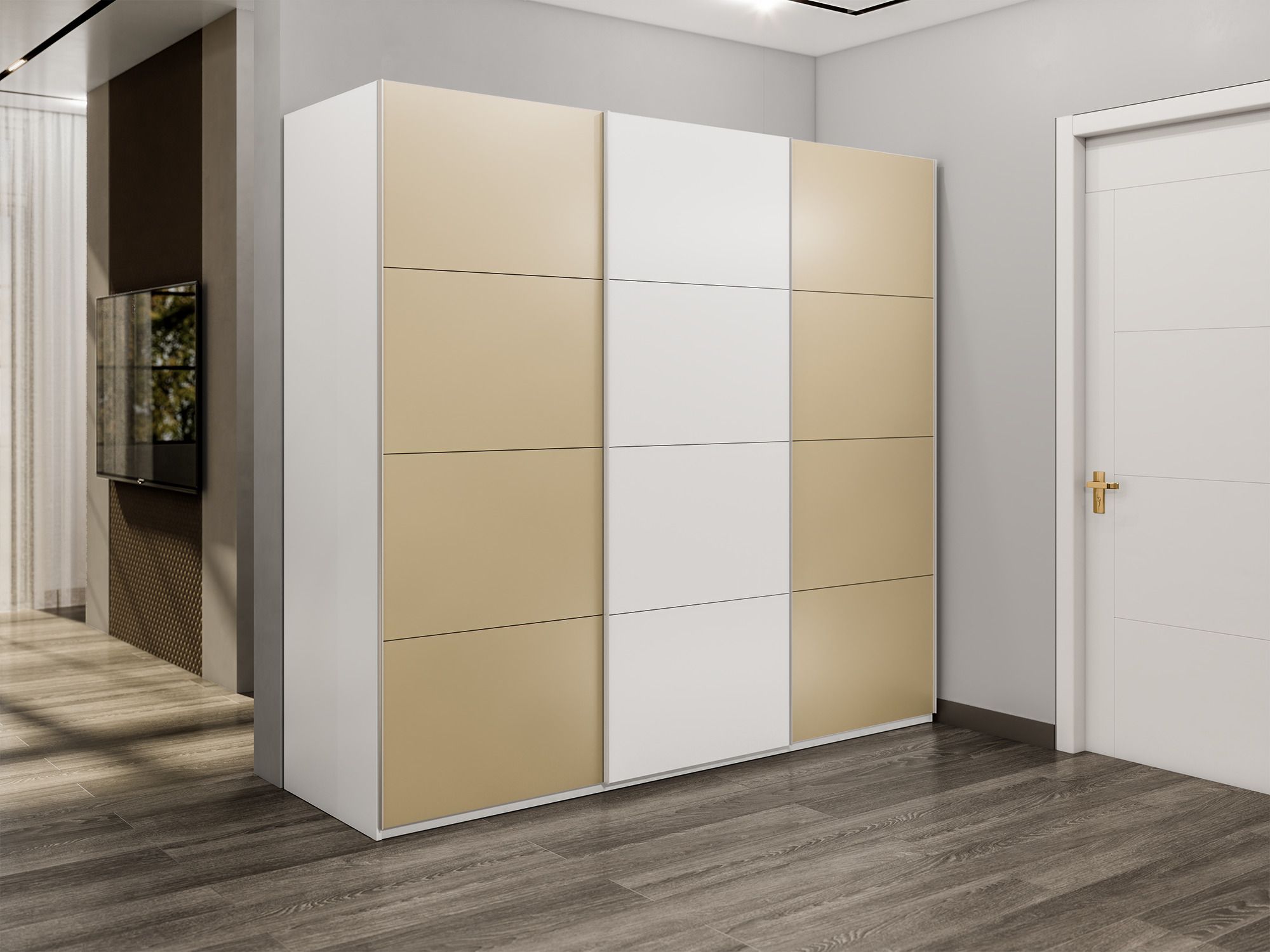 Отзывы о Столплит Шкаф-купе Эста 3-х дверный ДСП/Стекла фисташка/Доводчик 240х66х240 Белый
