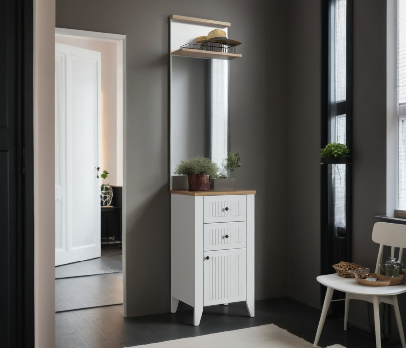 Отзывы о Столплит Тумба с зеркалом Монтана СБ-3551 Белый Альпийский,Дуб Гамильтон/МДФ Дуб Белый