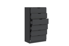 Комод оснащён шестью вместительными ящиками, с шариковыми направляющими. Ящики обеспечивают достаточно места для хранения одежды, белья или других личных вещей. Поверхность комода устойчива к загрязнениям и легко очищается, что позволяет сохранить его безупречный вид с минимальными усилиями.