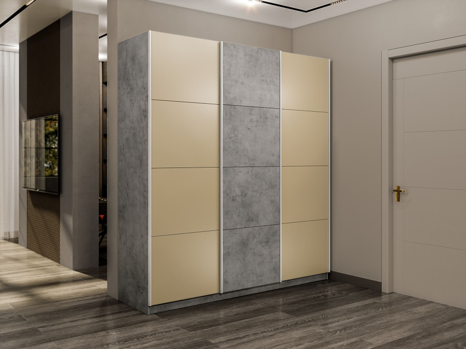 Шкаф-купе Прайм 3-х дверный Стекла фисташка/ДСП/Доводчики 180х57х230 (Бетон) Код I0000409255