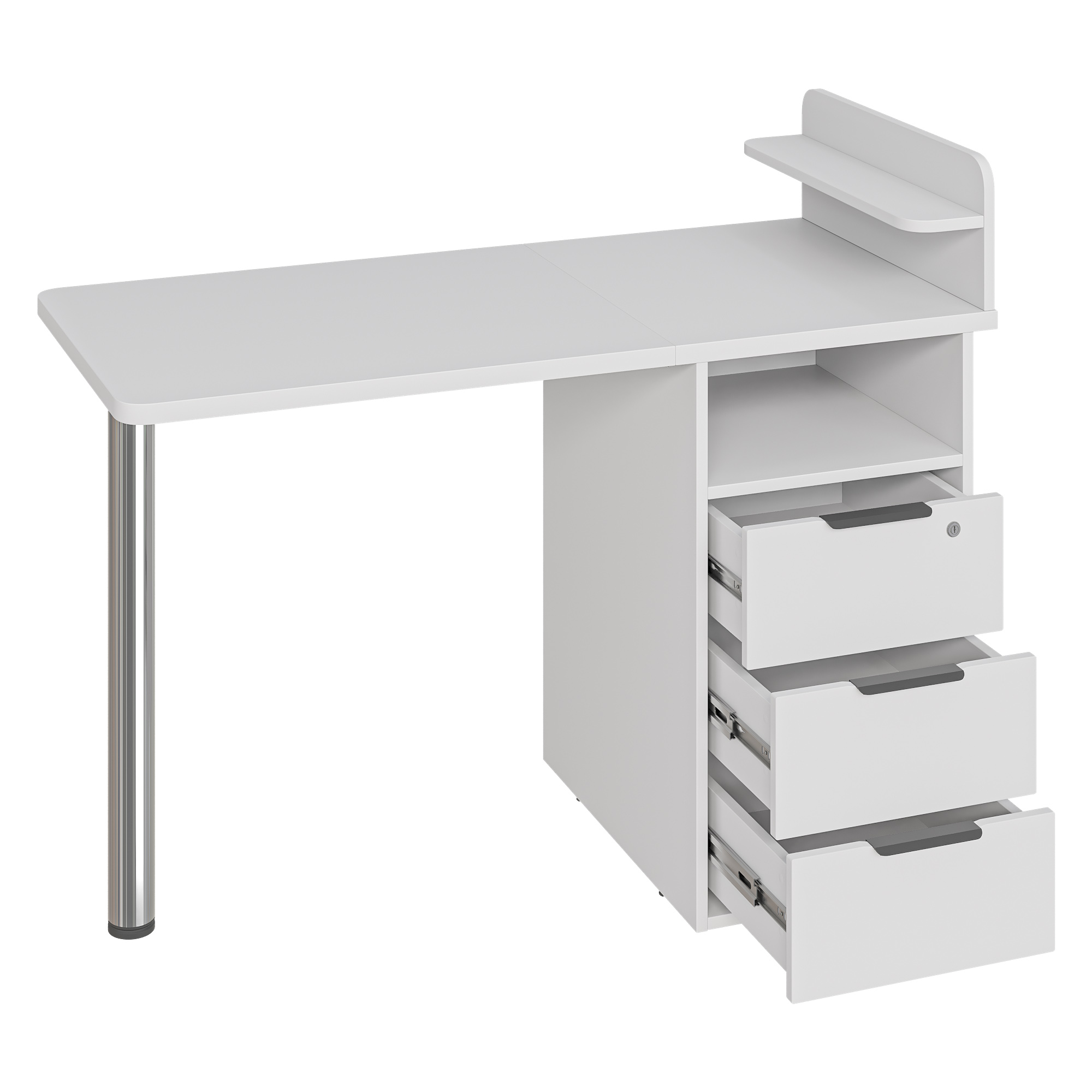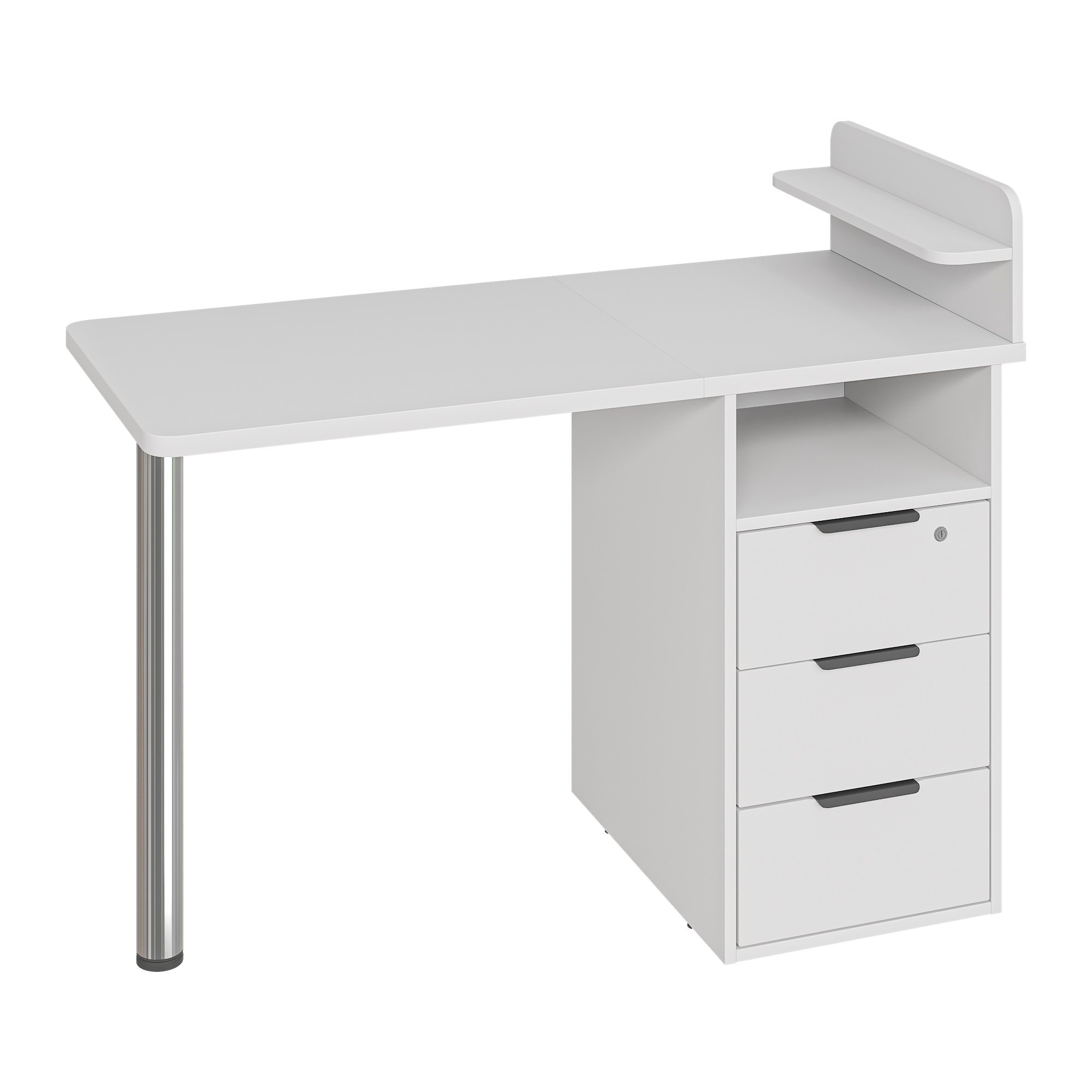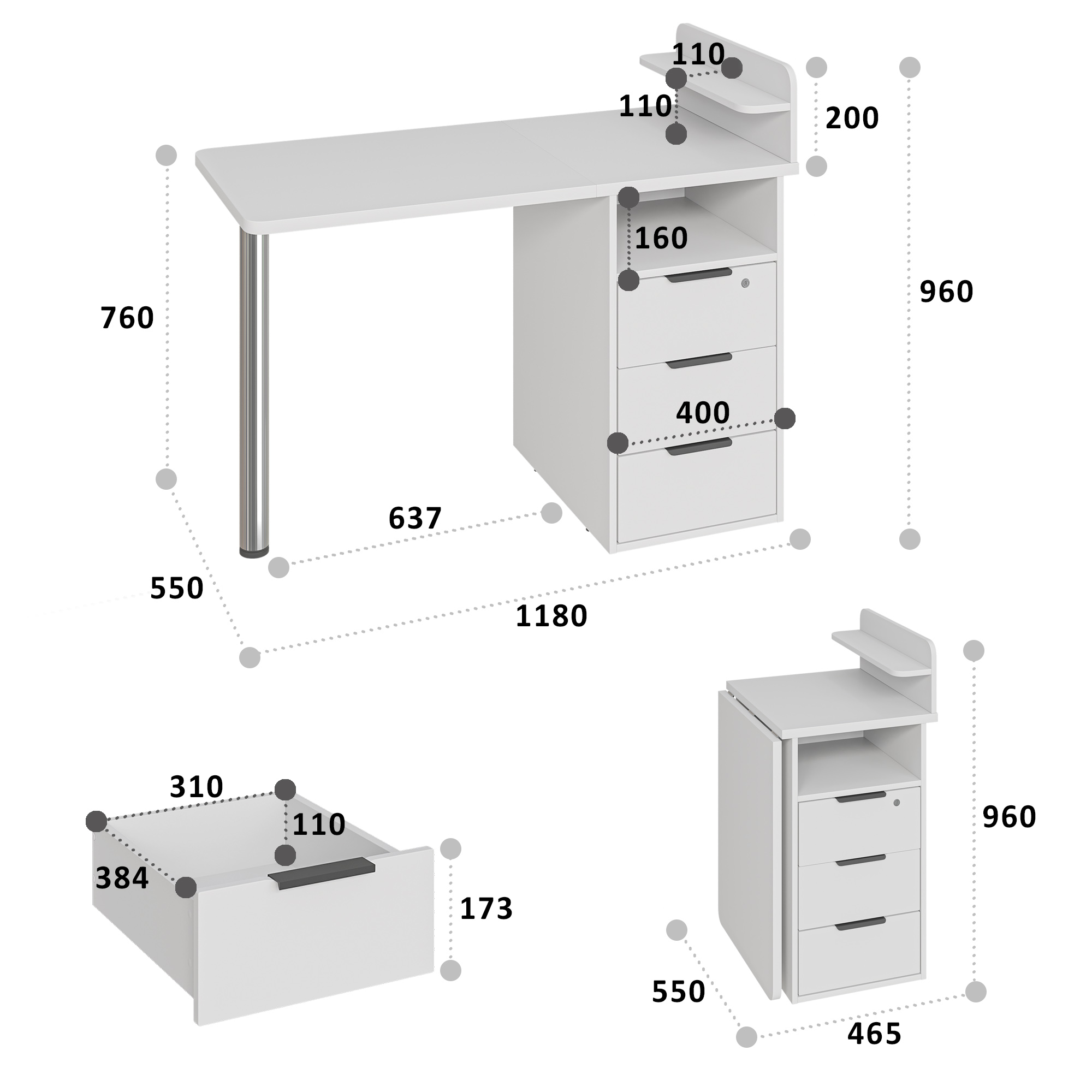 Стол письменный, компьютерный С-405 позволит создать комфортное и стильное рабочее пространство в офисе или домашнем кабинете. Стол С-405 можно использовать в качестве маникюрного стола в салоне. Стол имеет прочную стальную опору и тумбу с четырьмя выдвижными ящиками. Столешница изготовлена из ЛДСП 25 мм обработана ударопрочной кромкой 2 мм, фасады МДФ 16 мм. Дно ящика двп 3 мм. Стол может быть собран в зеркальном варианте «правым» или «левым». Возможна сборка стола без установки полки. Опора регулируется по высоте. Фурнитура: телескопические направляющие полного выдвижения без доводчиков, ручки и опора металл, ключи к замку в комплекте.