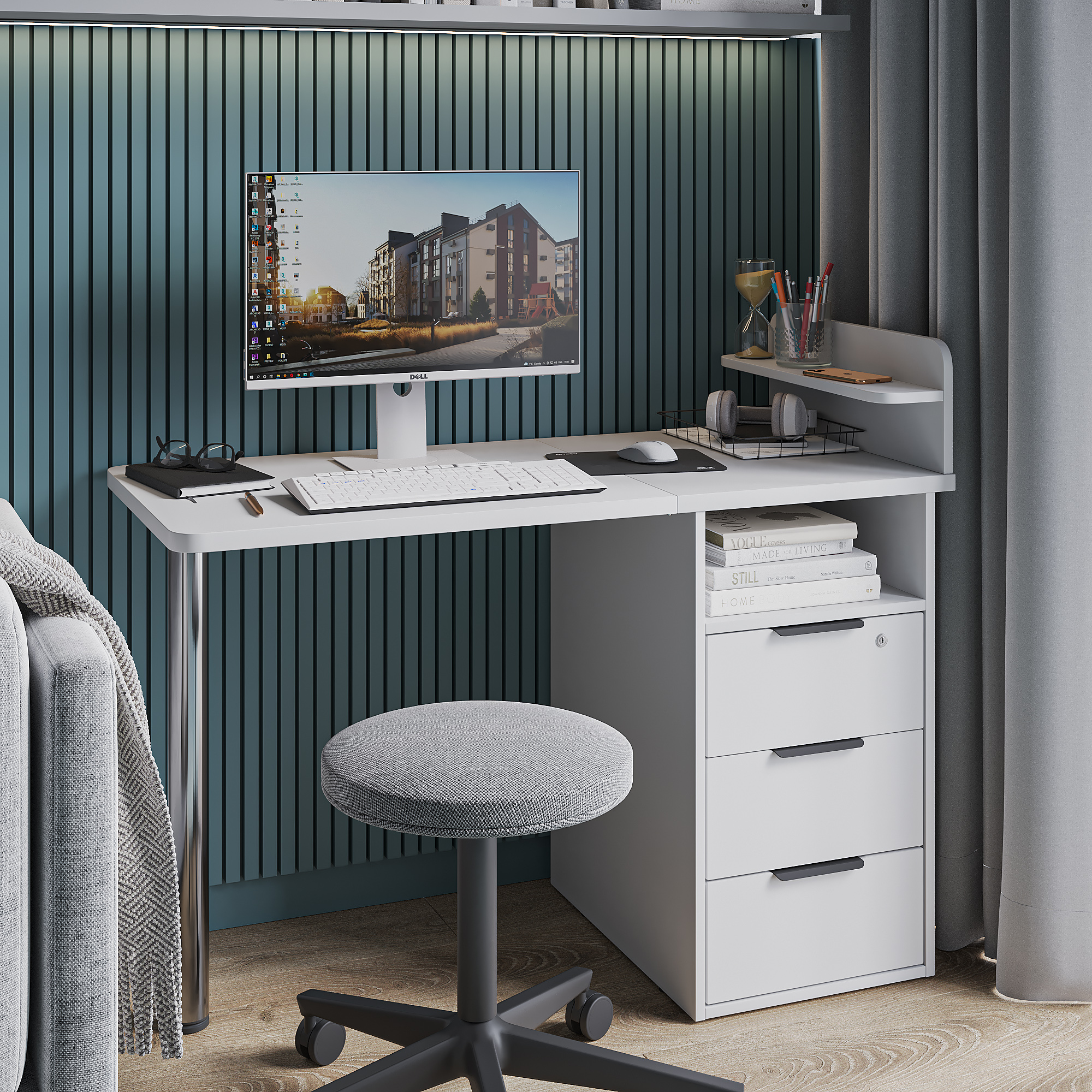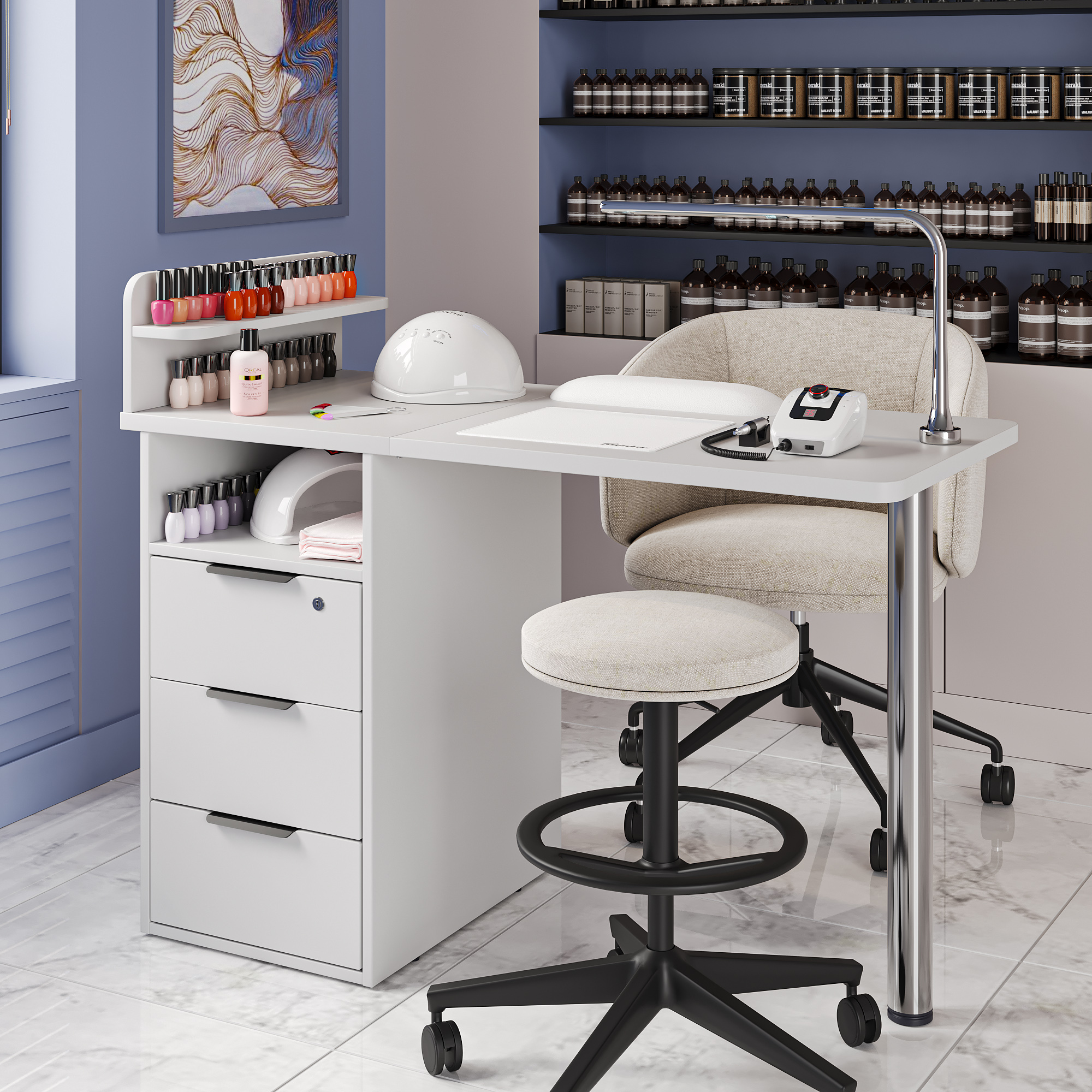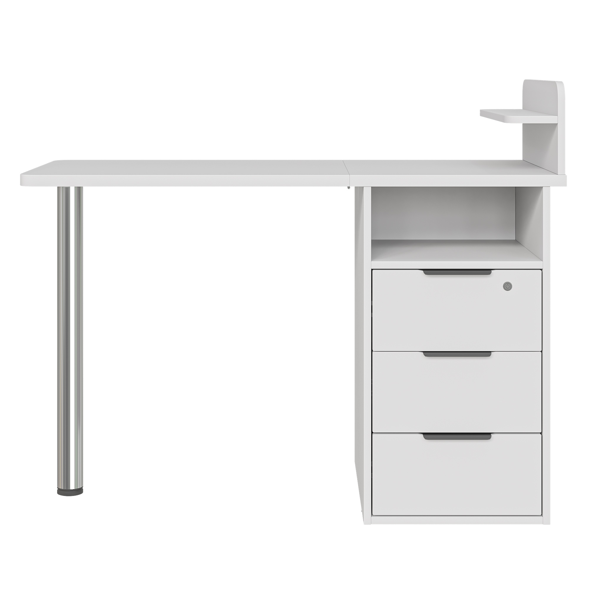 Стол письменный, компьютерный С-405 позволит создать комфортное и стильное рабочее пространство в офисе или домашнем кабинете. Стол С-405 можно использовать в качестве маникюрного стола в салоне. Стол имеет прочную стальную опору и тумбу с четырьмя выдвижными ящиками. Столешница изготовлена из ЛДСП 25 мм обработана ударопрочной кромкой 2 мм, фасады МДФ 16 мм. Дно ящика двп 3 мм. Стол может быть собран в зеркальном варианте «правым» или «левым». Возможна сборка стола без установки полки. Опора регулируется по высоте. Фурнитура: телескопические направляющие полного выдвижения без доводчиков, ручки и опора металл, ключи к замку в комплекте.