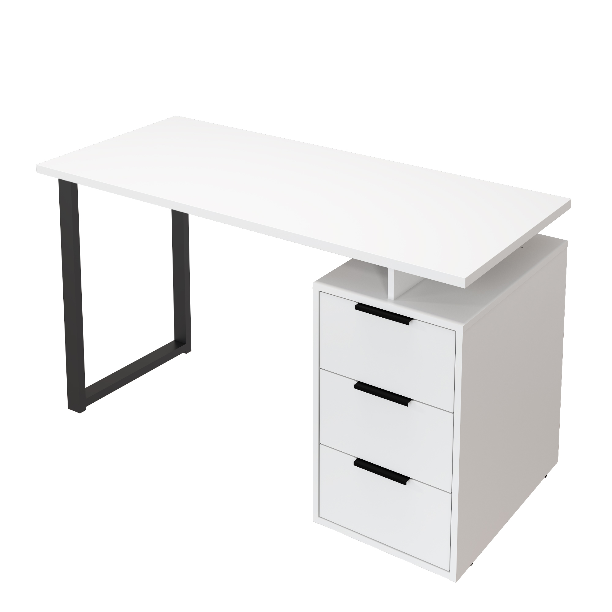Стол письменный, компьютерный С-406 позволит создать комфортное и стильное рабочее пространство в офисе или домашнем кабинете.. Стол имеет прочную стальную опору и тумбу с тремя выдвижными ящиками и полкой для мелочей Столешница изготовлена из ЛДСП 25 мм, фасады МДФ 16 мм. Дно ящика двп 3 мм. Стол может быть собран в зеркальном варианте «правым» или «левым». Фурнитура: телескопические направляющие полного выдвижения без доводчиков, ручки и опора металл.