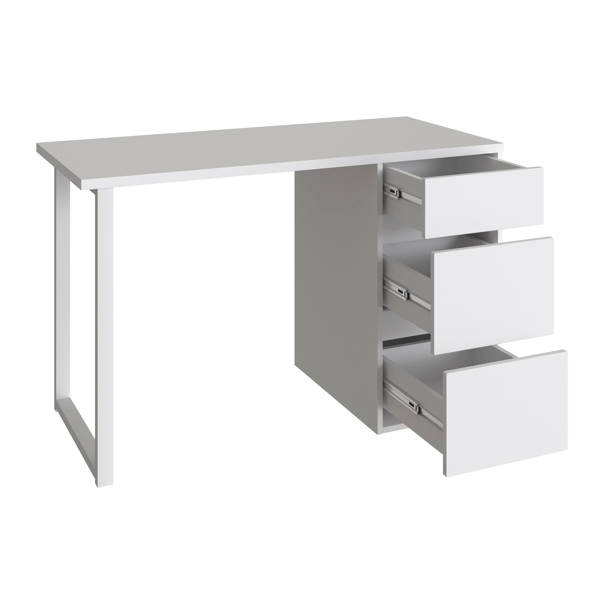 Стол компьютерный, письменный С-411 - это идеальное решение как для большого пространства, так и для небольшой комнаты. Стол прямой обеспечивает максимальную вместительность и удобство использования. Стол оснащен стильной металлической опорой. Три выдвижные ящика - вместительны и комфортны в расположении. Не нужно никуда вставать, за важными документами или вещами, достаточно расположить все рядом с собой! Стол может быть собран в зеркальном варианте «правым» или «левым». Столешница изготовлена из ЛДСП 25 мм, фасады МДФ 16 мм. Дно ящика ДВП 3 мм. Фурнитура: телескопические направляющие полного выдвижения без доводчиков, опора металл.