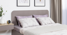 Подвесные консоли и велюровый пуф в тон фасадов дополняют сдержанный и благородный облик спальни Амьен.
