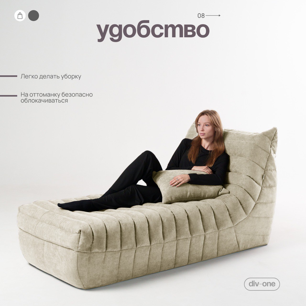 Бескаркасный диван Говард с оттоманкой — это универсальный предмет мебели, который подойдет для любой комнаты. Он отлично впишется в интерьер спальни, гостиной, детской или даже кухни.