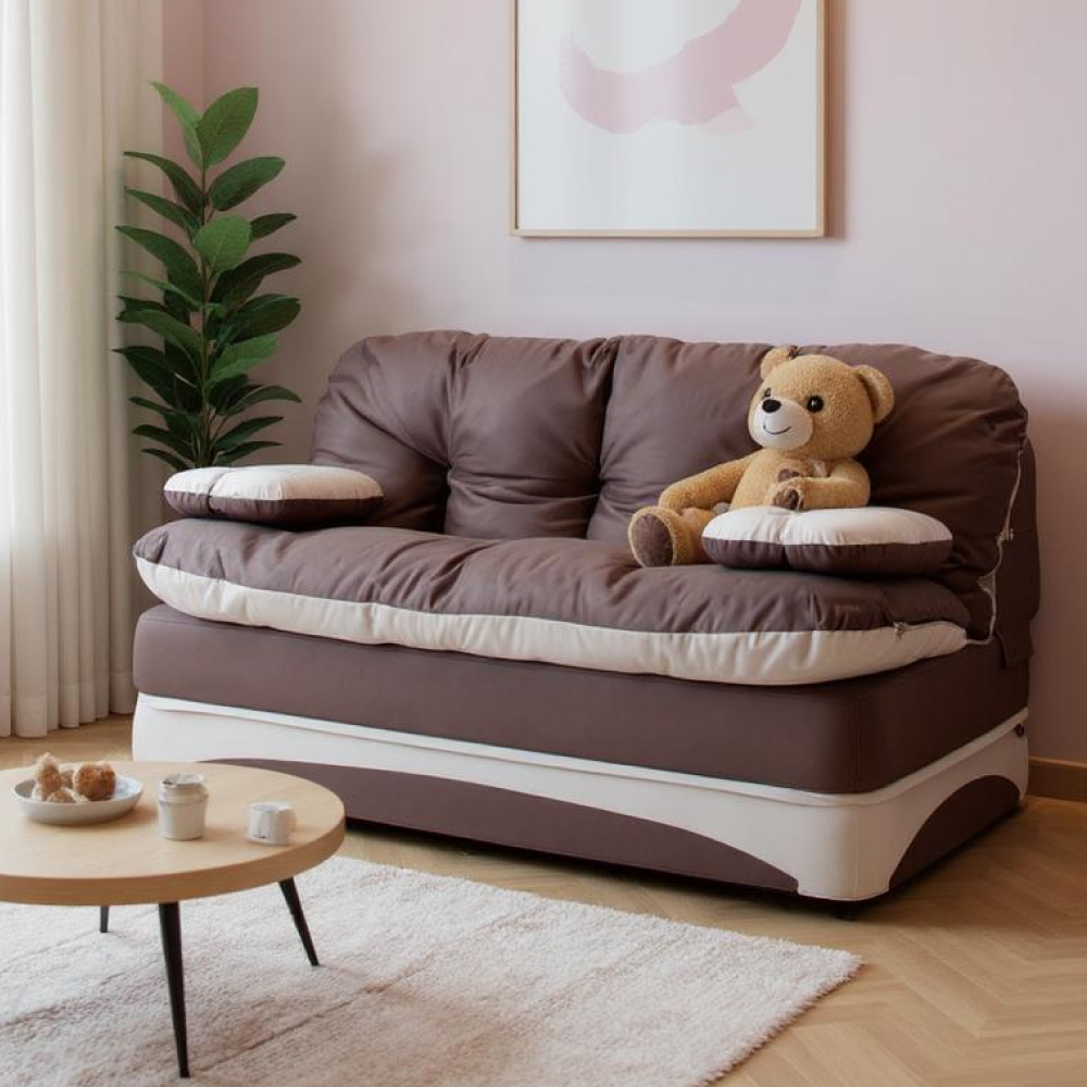 Благодаря отсутствию твердых элементов в конструкции софа безопасна для ребенка и идеально впишется в детскую комнату.
