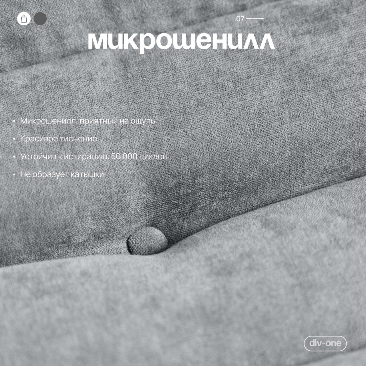 Мягкая обивка обеспечивает комфорт и удобство во время отдыха. Она выполнена из высококачественного Микрошенилла, который не только приятен на ощупь, но и легко чистится. Модуль имеет ортопедическую форму, которая поддерживает спину и обеспечивает комфорт во время отдыха.