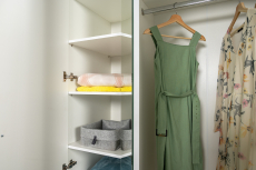 Внутри 9 полок и штанга для плечиков с одеждой.