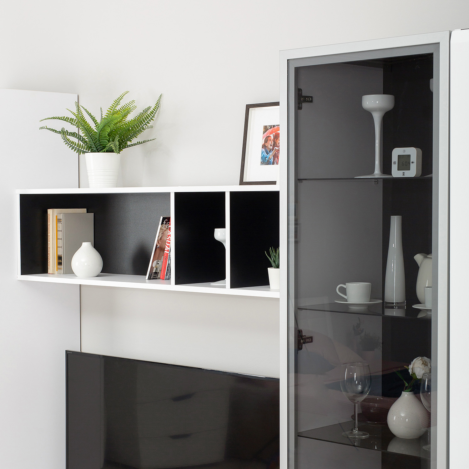Полка Сидней 15.57 крепится к боковинам соседних модулей, создавая единую компоновку.