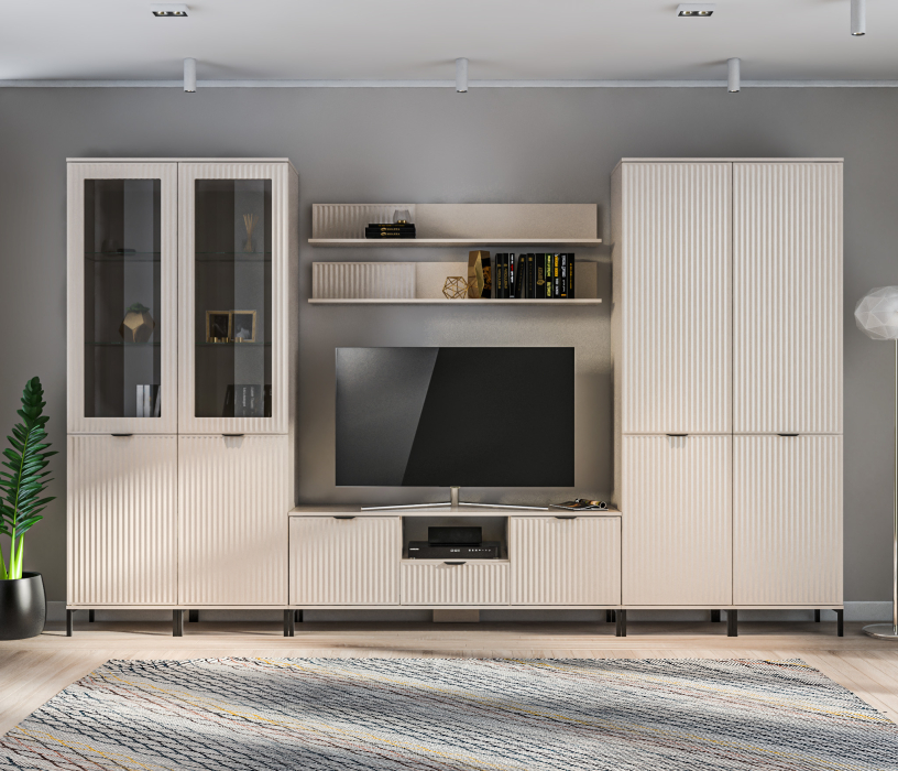 Отзывы о Столплит Набор для гостиной с двумя витринами Турин Кашемир серый/МДФ Кашемир