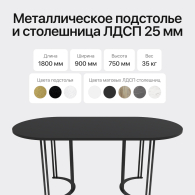 Стол овальный обеденный с чёрным металлическим подстольем VIOLUR 180 (Черный)