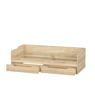 Надежная односпальная кровать из ЛДСП с ящиками. Выполнена в приятном древесном декоре "ясень анкор светлый". Два выкатных ящика подойдут для хранения постельного белья и личных вещей ребенка.