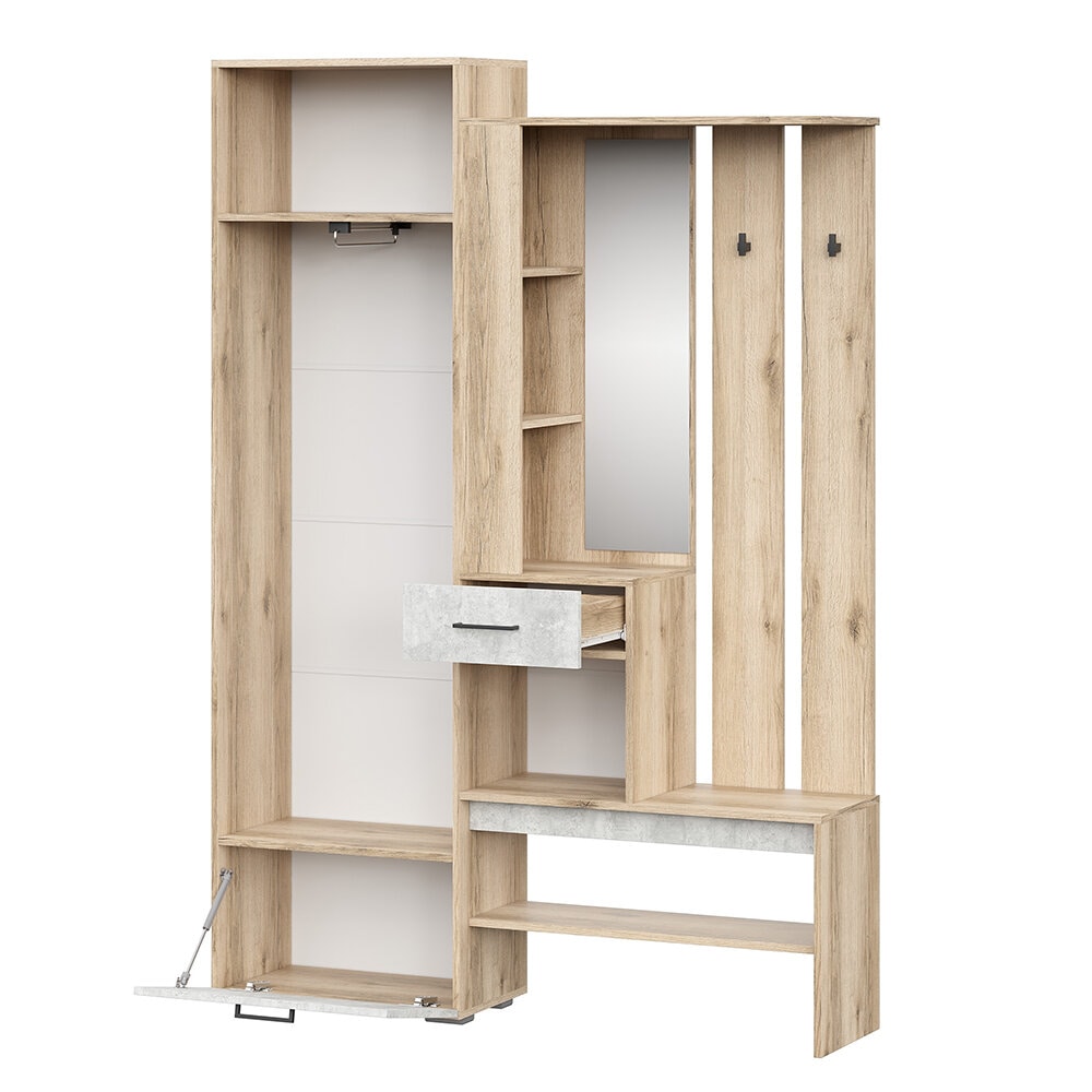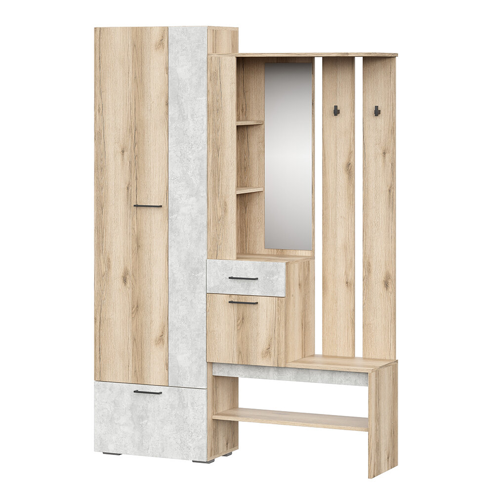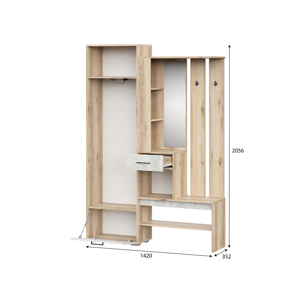 Данная модель выполнена в практичном для прихожей немарком цвете дуб делано / цемент светлый.