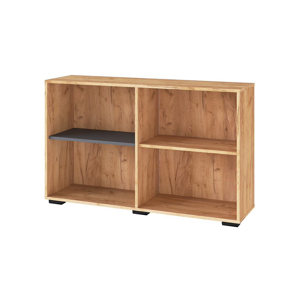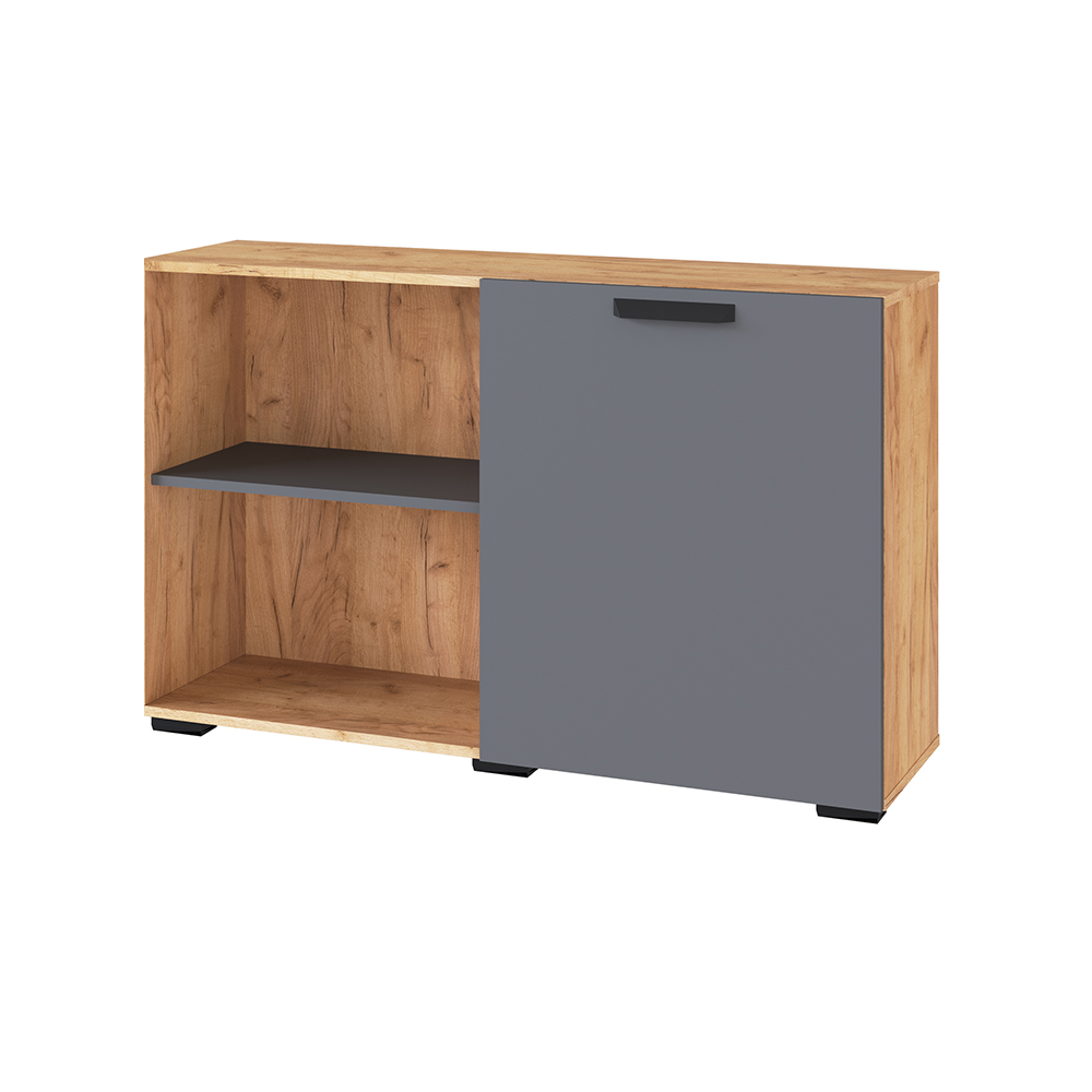 Модульную серию Квартет-13 можно использовать для создания мини-офиса или компактного рабочего места. Эффектный корпус в древесном декоре отлично сочетается с фасадами в цвете графит и в белом цвете с тиснением "древесные поры".