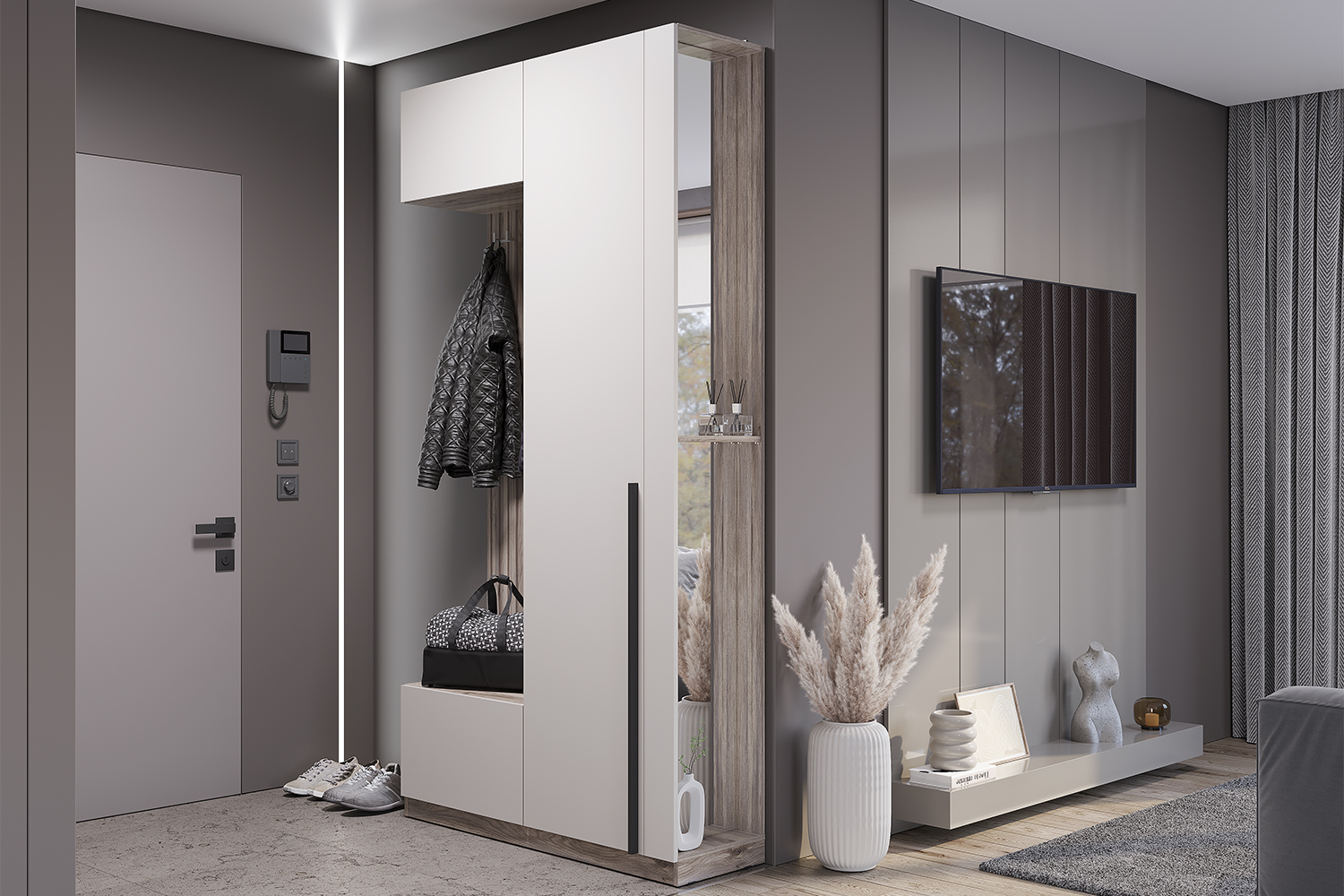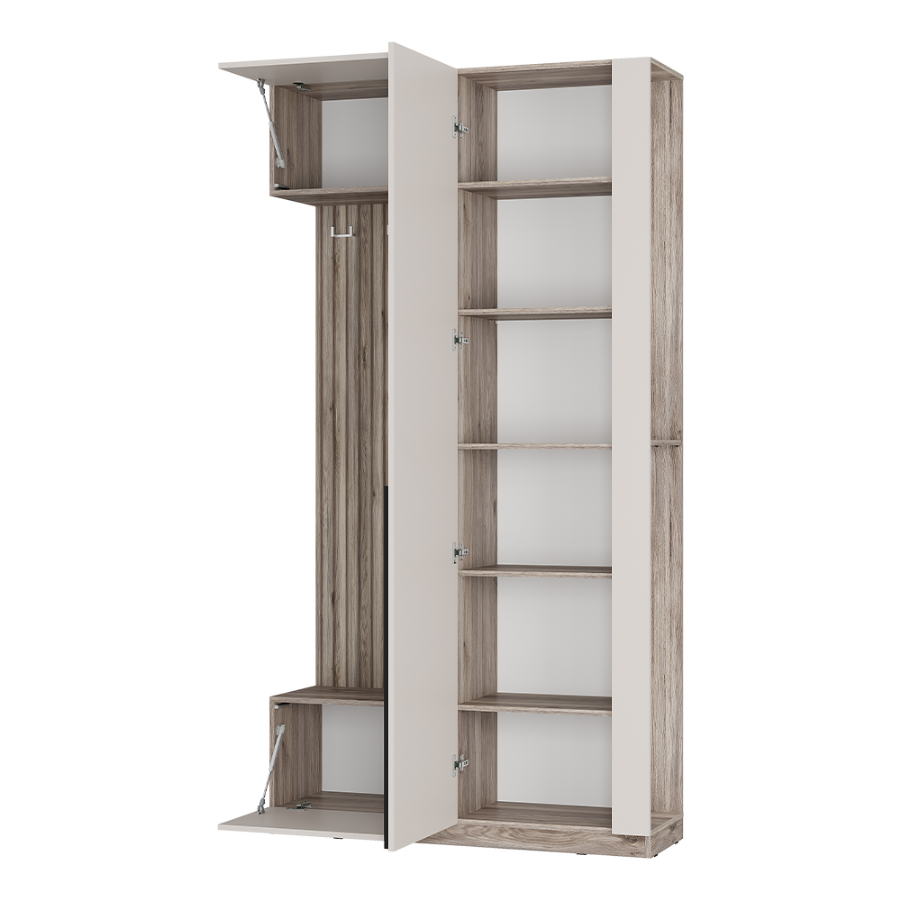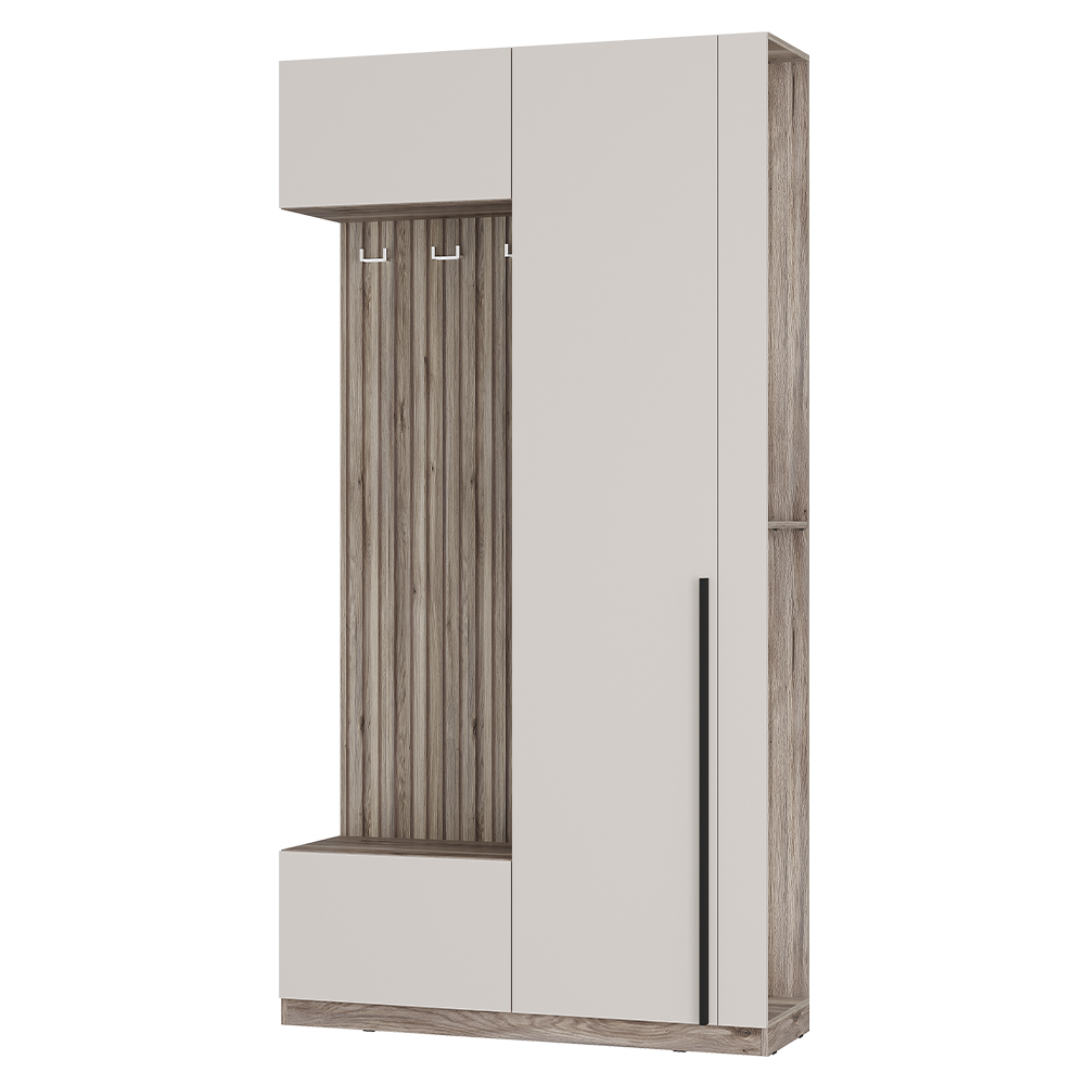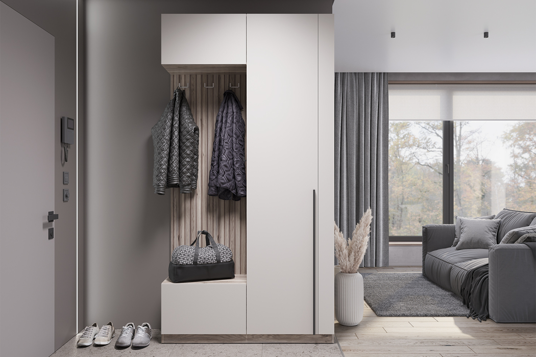 Прихожая Урбан ПР-01 — это отличное решение для небольшой квартиры. Эта модель оснащена полками для горизонтального хранения, зоной для аксессуаров и головных уборов, закрытой тумбой для обуви, а также открытым пространством для повседневной верхней одежды.