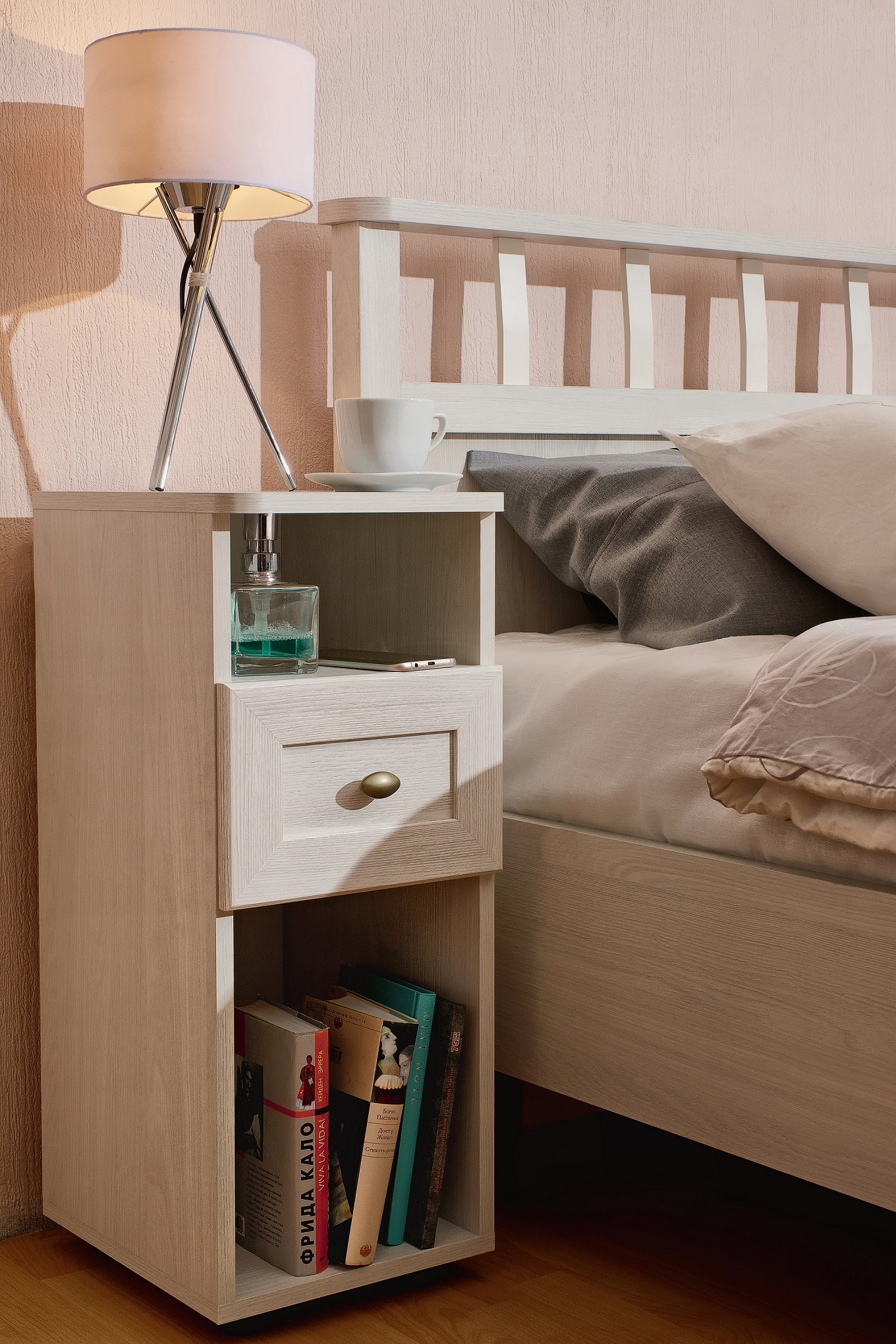 Прикроватная тумба - компактное и привлекательное дополнение к основному мебельному гарнитуру в спальне. Высокая тумбочка из коллекции Sherlock гармонично впишется в классический интерьер Вашей спальни и не займет много места. Модель оснащена столешницей со скругленными углами, куда поместится ночник, узкий выдвижной ящик на шариковых направляющих полного, плавного и бесшумного выдвижения, а также две открытые ниши. Нижняя подойдет для хранения альбомов, журналов, планшета, а верхняя - для различных мелочей, которые необходимо иметь под рукой перед сном и после пробуждения.