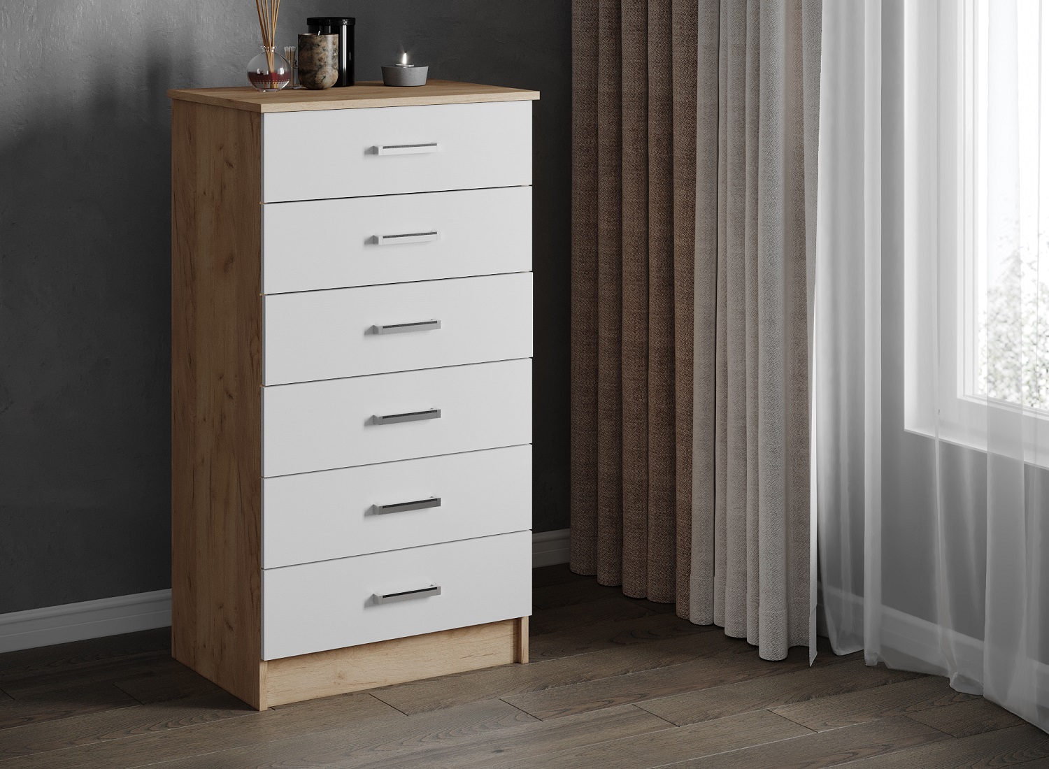 Комод высокий Катрин 4 (Дуб крафт/белый)