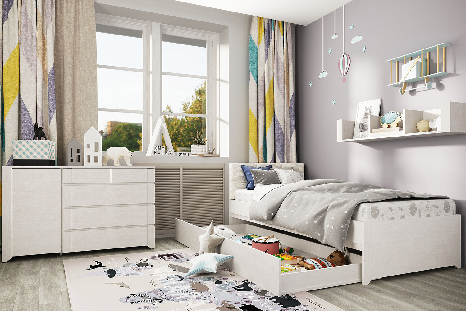 Комбинированный комод Твист небольших габаритов, но с большой вместимостью. Дополняет систему храненияв молодежной комнате.