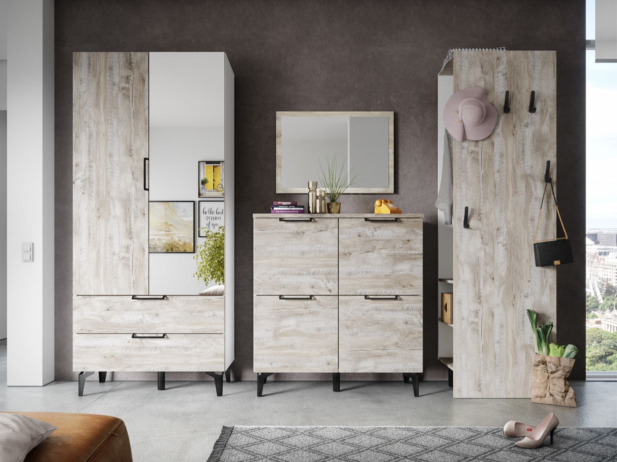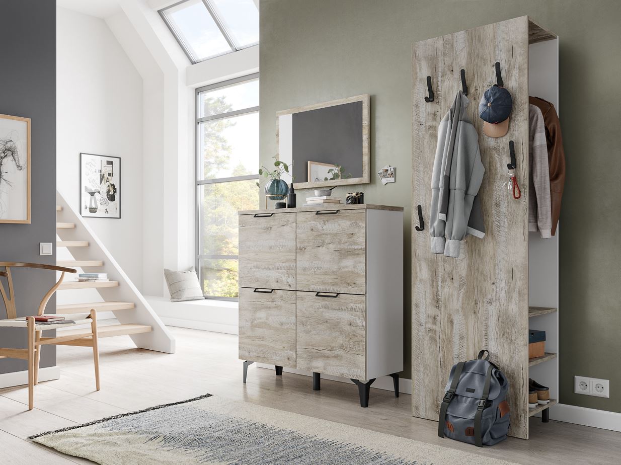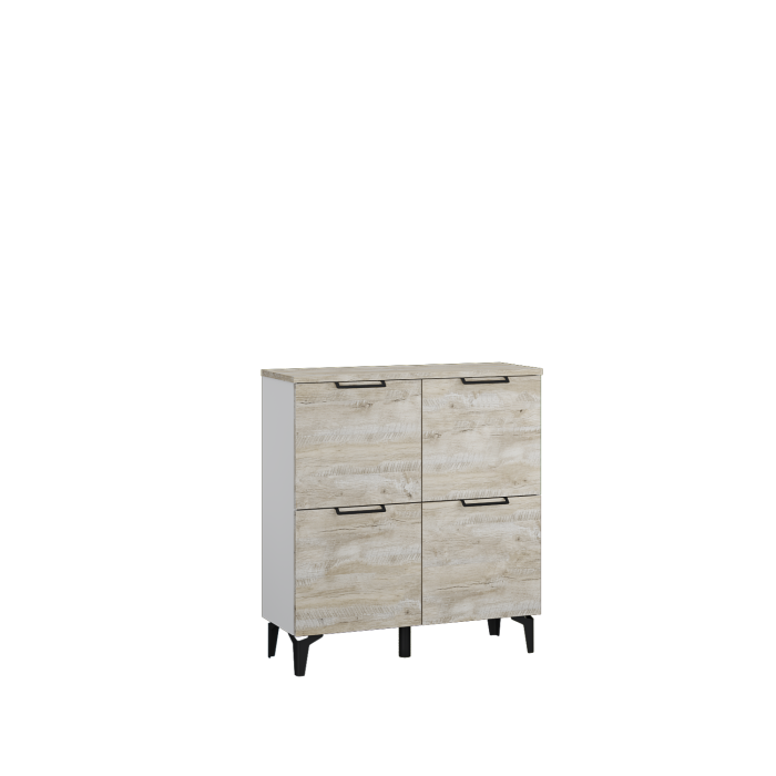 Организовать грамотное хранение сложенных вещей и обуви в малогабаритной прихожей становится возможным благодаря комоду из коллекции Чикаго. Модуль выполнен в современном стиле в декоре дуб юкон/белый, тонкие черные ручки и ножки добавляют ему вкуса. Откидная конструкция дверей дарит Вам возможность сэкономить пространство перед комодом, тем самым Вы можете разместить его даже в узком помещении.