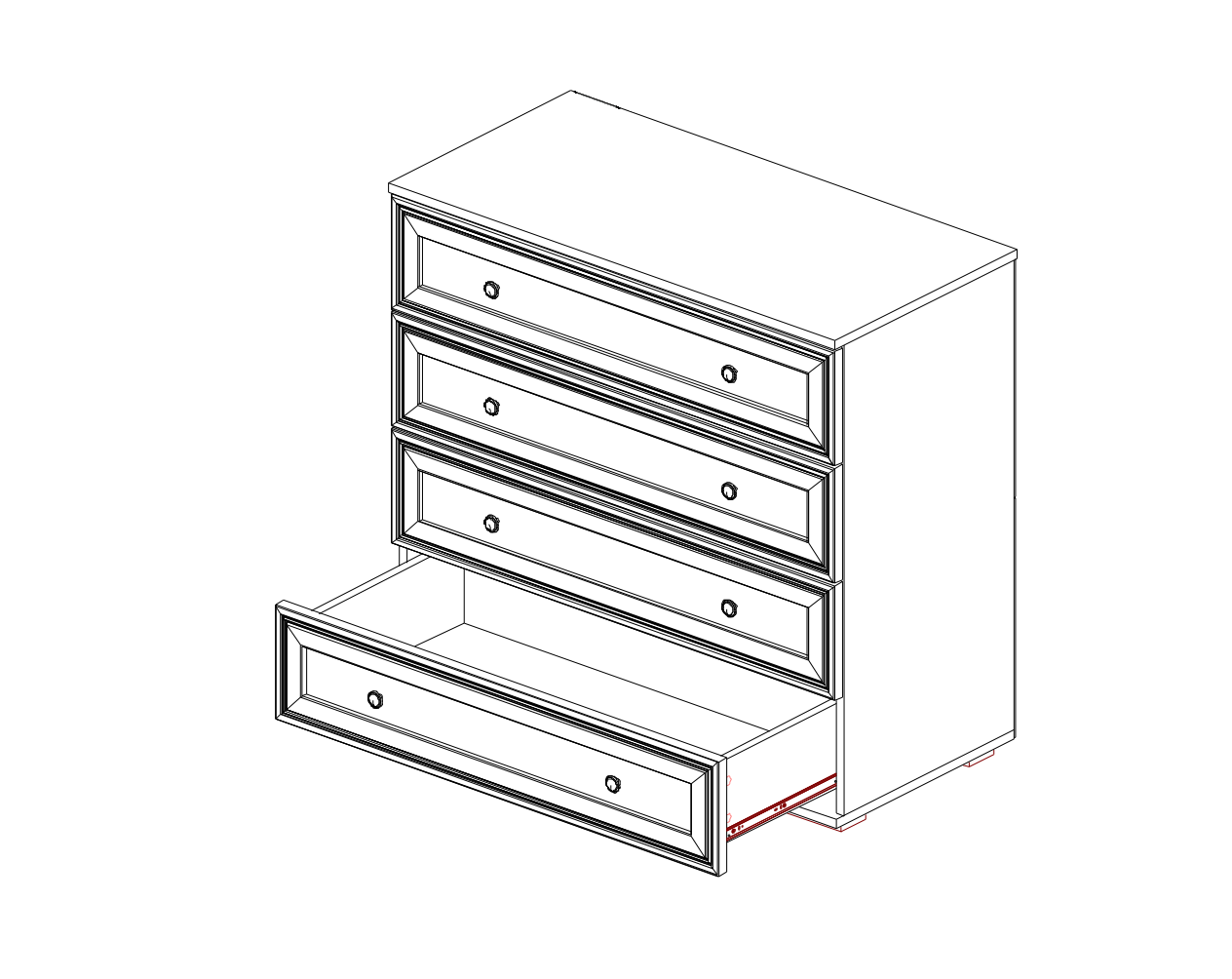 Впечатление солидности, надежности производит фурнитура: шариковые направляющие полного выдвижения.