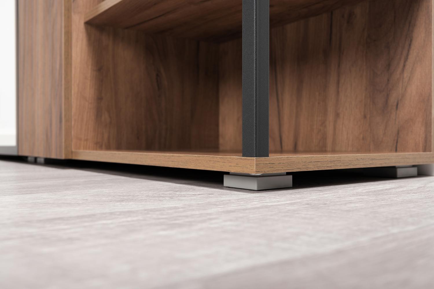 Он выполнен из высококачественных материалов: корпус из ЛДСП и металла, а ручки и опоры — из пластика.
