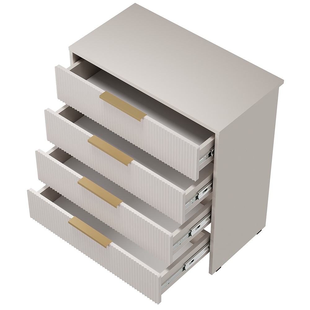 Комод Пандора КМ-02 — это стильный и функциональный элемент мебели, который идеально впишется в любой интерьер. Он сочетает в себе элегантный дизайн и практичность, что делает его отличным выбором для вашей гостиной, спальни или прихожей. Комод оснащён четырьмя просторными выдвижными ящиками, которые обеспечивают достаточно места для хранения одежды, белья, документов и других предметов.