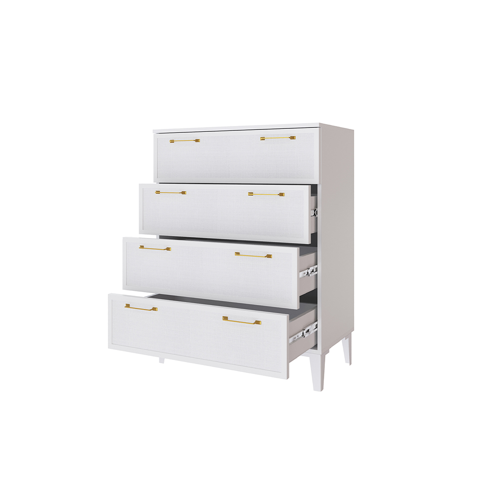Ящики комода оснащены направляющими полного выдвижения с шариковым механизмом, обеспечивающим плавное и легкое открывание.