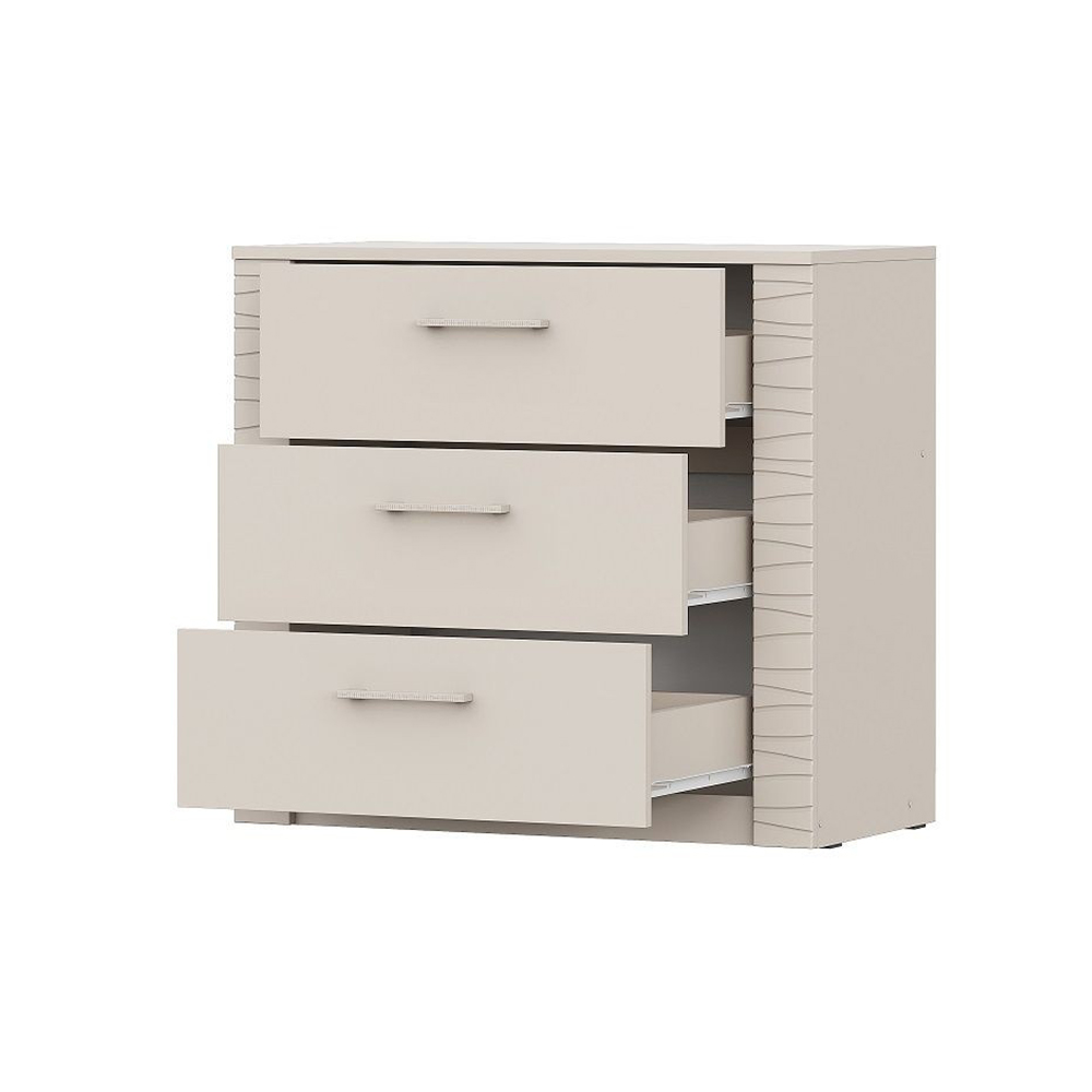 Комод Калипсо - это универсальный предмет мебели, который идеально подойдет для организации пространства в любом доме. Этот комод выполнен из качественных материалов, что обеспечивает его долговечность и устойчивость к повреждениям. Три выдвижных ящика предоставляют удобное и практичное решение для хранения различных предметов: от предметов гардероба до мелких вещей и аксессуаров. Ящики легко открываются и закрываются, благодаря надежным роликовым направляющим.
