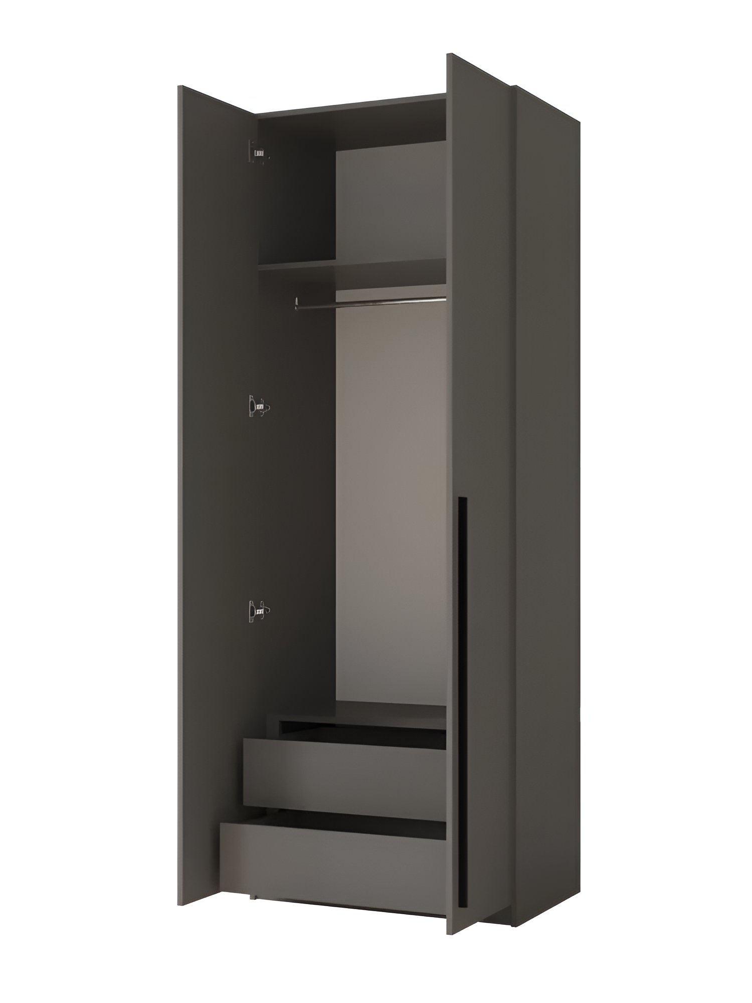 Данный шкаф сочетает в себе практичность и стиль. Удобная конструкция с двумя дверцами обеспечивает легкий доступ к одежде, а встроенные ящики позволяют удобно разместить мелкие предметы, такие как носки, ремни или платки. Благодаря распашному механизму, вам не придется беспокоиться о том, что двери будут мешать при открытии.