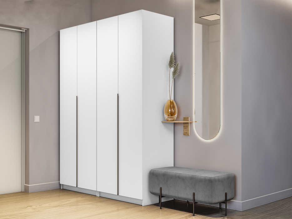 Система из двух шкафов для одежды Локер со складным механизмом открывания WingLine L— это комфортное хранение вещей и эргономичная организация пространства. Идеально подойдет не только к вашему спальному гарнитуру, прихожей и детской, но и будет гармонично сочетаться со всеми элементами мебели. Не займет много места, но позволит вместить большое количество вещей. Внутреннее наполнение шкафа позволяет вместить не только верхнюю одежду и обувь, но и аксессуары. А удобное разделение секций поможет грамотно разместить все вещи в шкафу. Благодаря надежным полкодержателям - штифтам, полки шкафа могут выдерживать до 15 кг. Вы сможете убрать сезонные вещи, постельное белье на верхние полки. Шкаф оснащен долговечной, ударостойкой кромкой ПВХ, которая защищает его торцы от сколов и повреждений, что обеспечит вам комфортное и долгое использование гардероба. Складная система дверей WingLine L экономит внешнее пространство за счет складывания дверей и обеспечивает их надежную фиксацию в открытом виде. Данный механизм обеспечивает плавный ход и исключает образование слепых зон. Система рассчитана на 40 000 циклов «открывание-закрывание». Шкаф оснащен удобной минималистичной ручкой, изготовленной из алюминия. В производстве используется безопасное ЛДСП международного класса Е1, что способствует безопасному использованию на протяжении всего срока эксплуатации. Поэтому вы можете использовать его в детской комнате, и ваш ребенок будет в безопасности. *Изображения товара могут отличаться по цвету и фактуре от фактического внешнего вида.