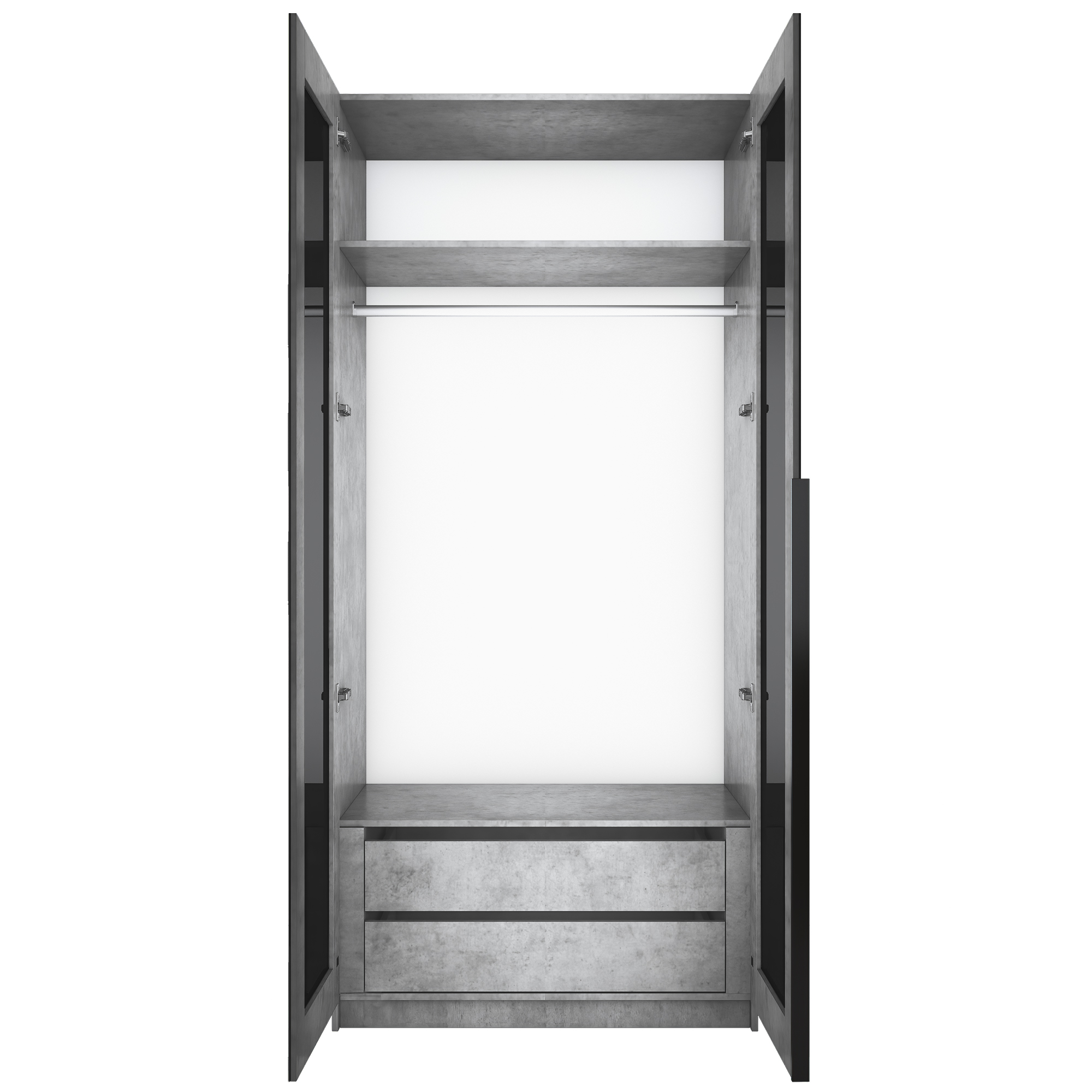 Шкаф распашной Е1 Локер 101x52.5x220 см, с черным стеклом и модулем (бетон) Код I0000426773