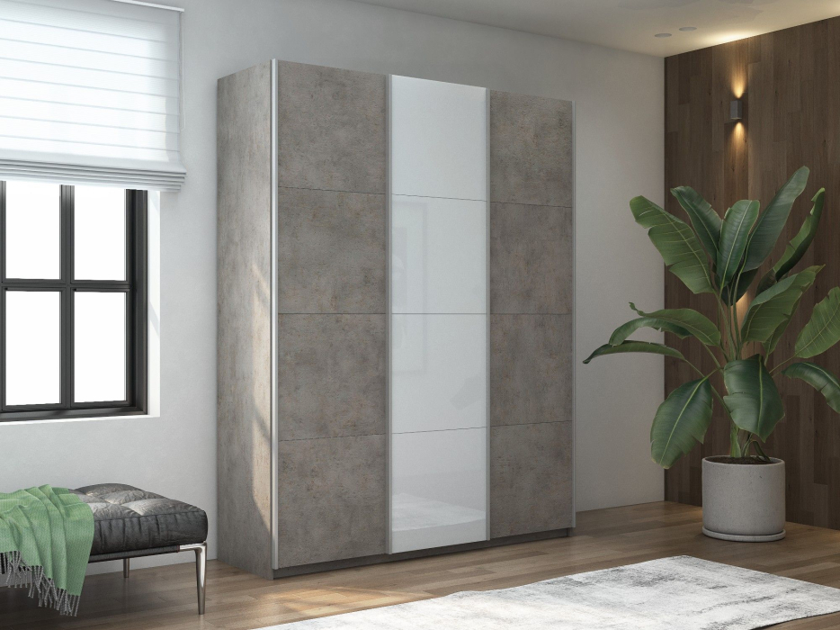 Отзывы о Столплит Шкаф-купе Прайм 3-х дверный ДСП/Стекло белое/Доводчики 210х57х230 бетон