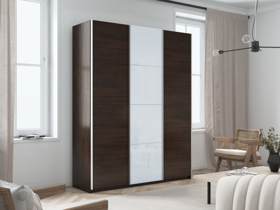 Отзывы о Столплит Шкаф-купе Прайм 3-х дверный ДСП/Стекло белое/Доводчики 210х57х230 Венге