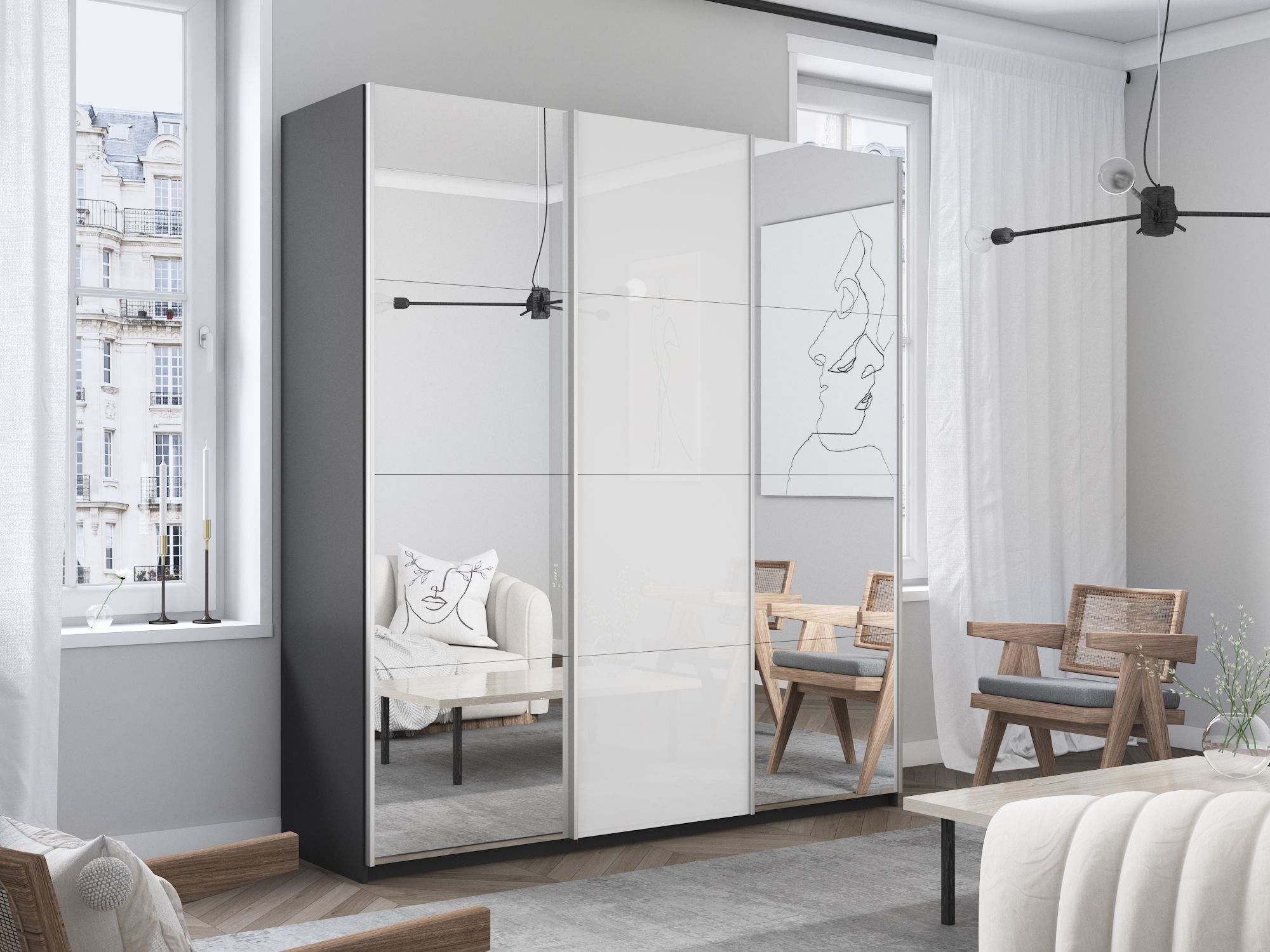 Отзывы о Столплит Шкаф-купе Прайм 3-х дверный Зеркала/Стекло белое/Доводчики 210х57х230 Серый диамант