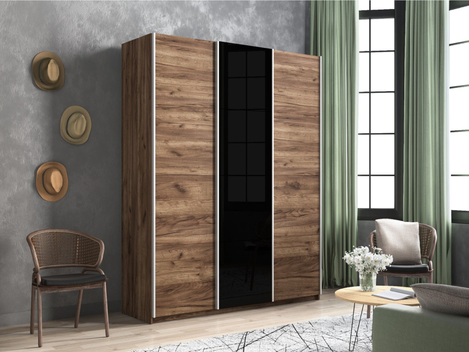 Отзывы о Столплит Шкаф-купе Прайм 3-х дверный ДСП/Стекло черное/Доводчики 180х57х230 Дуб/крафт/табак